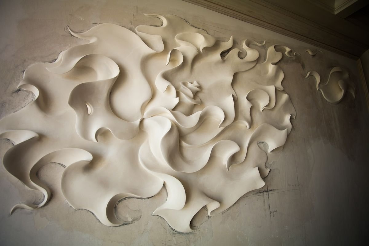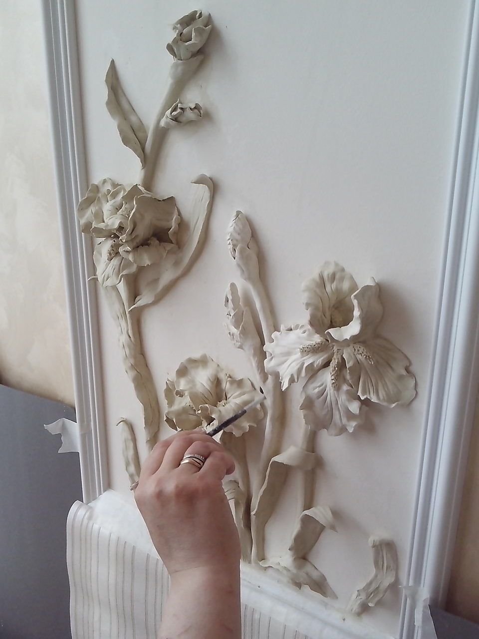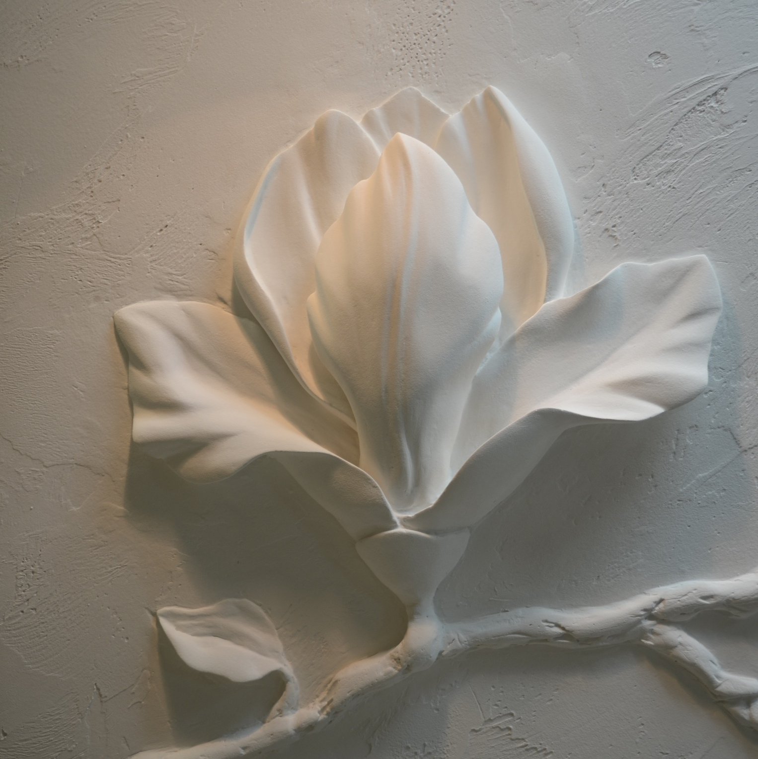 Цветы из гипса на стене в интерьере