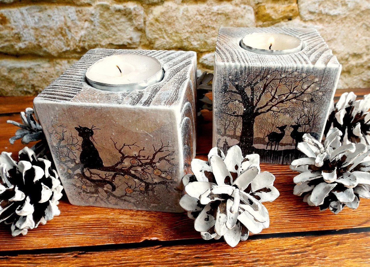 Декупаж деревянного подсвечника