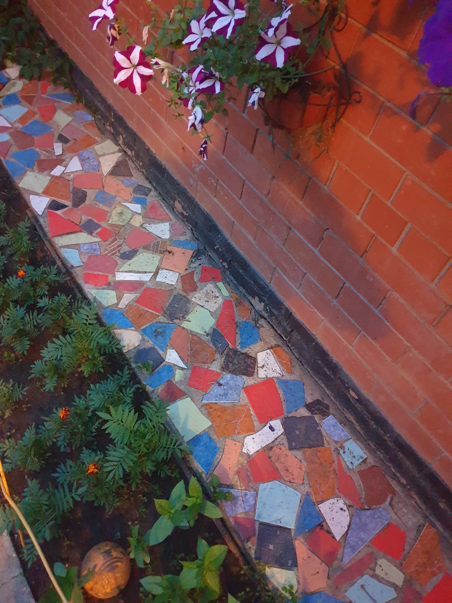 Клумба из битой плитки