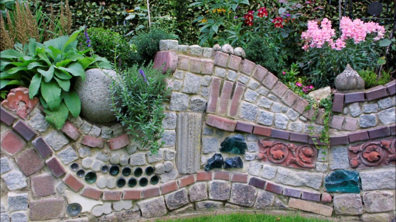 Забор для клумб из старой плитки