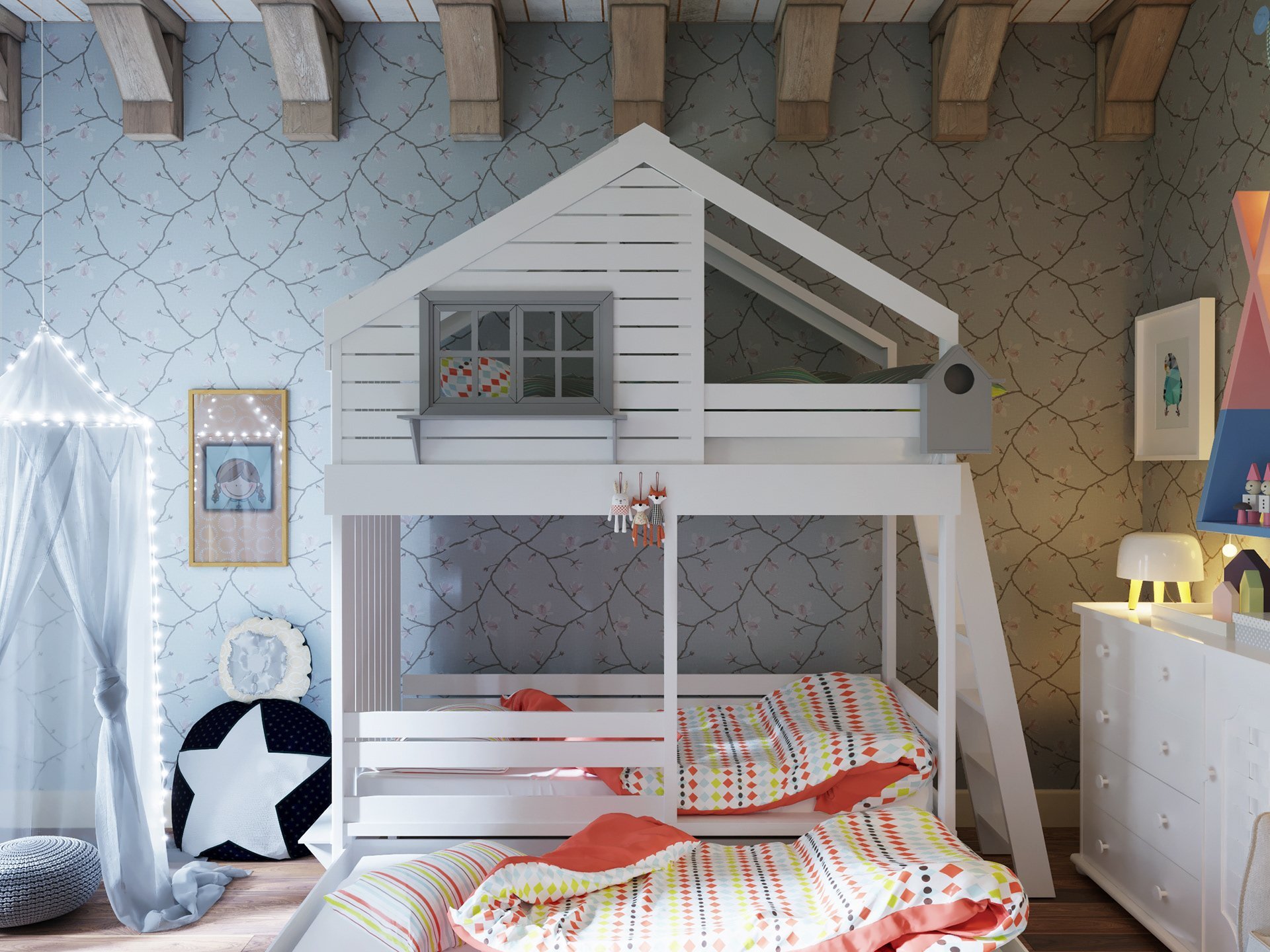 Детская 2-ярусная кровать домик Бильбао СЛК