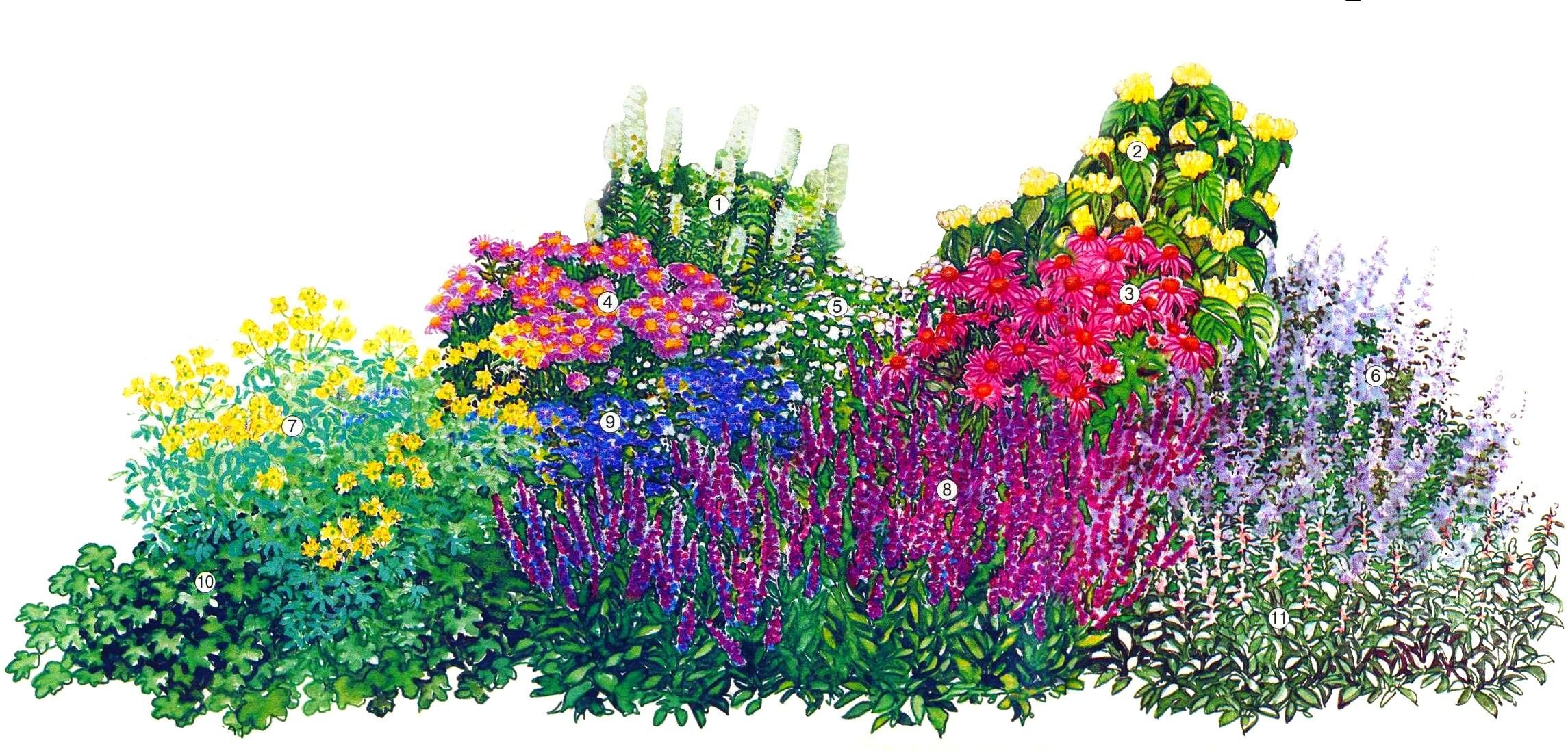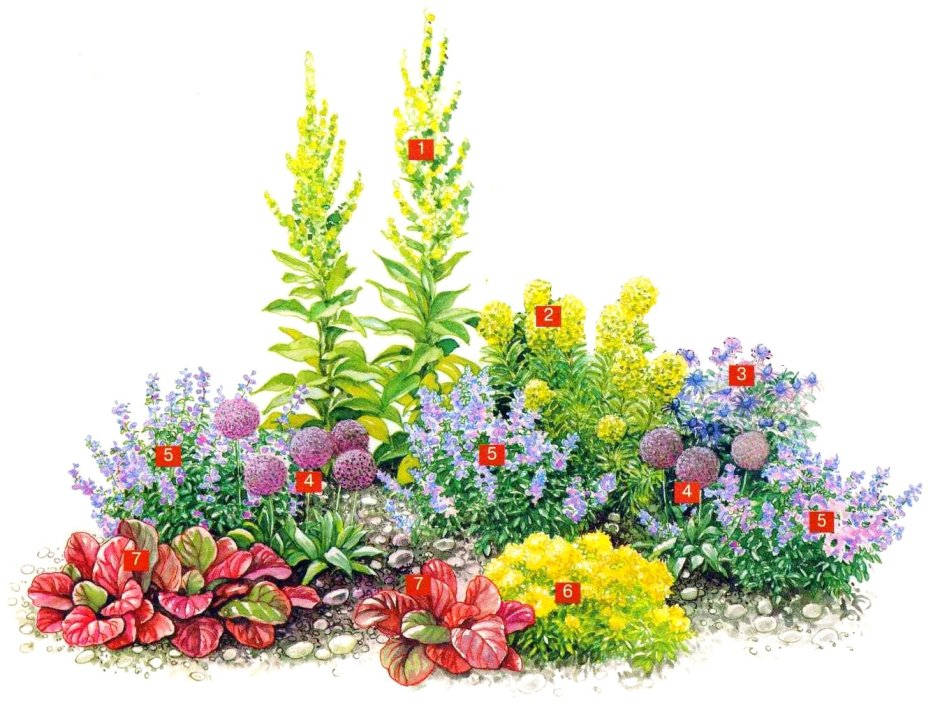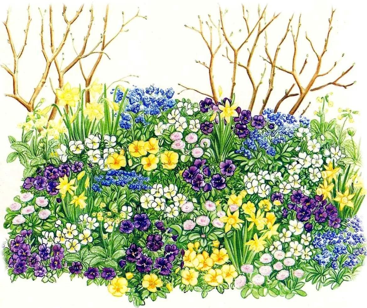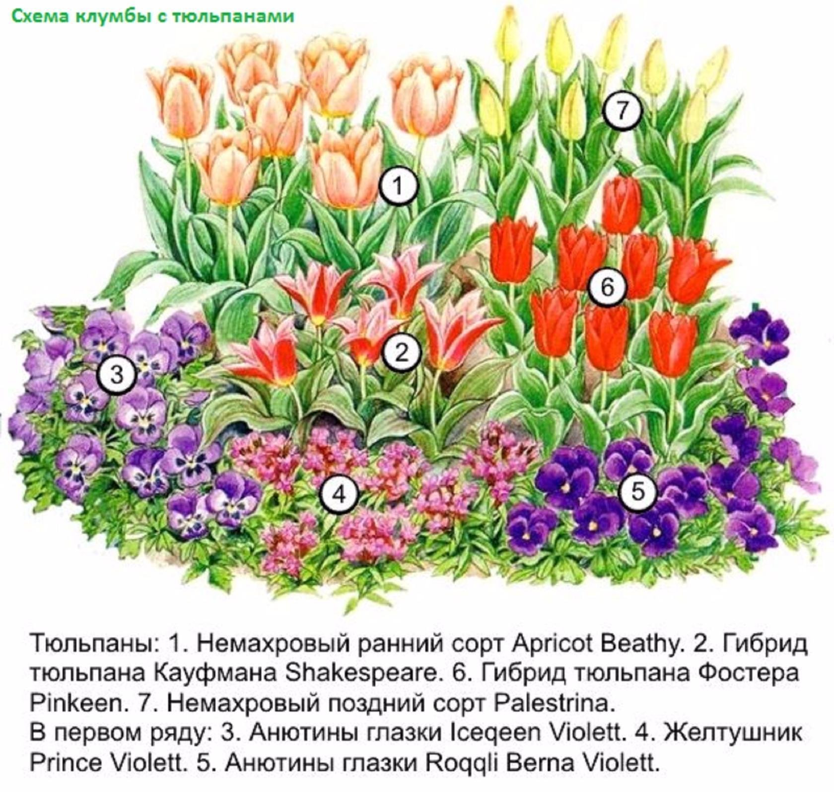 Клумба из луковичных схема непрерывного цветения из многолетников