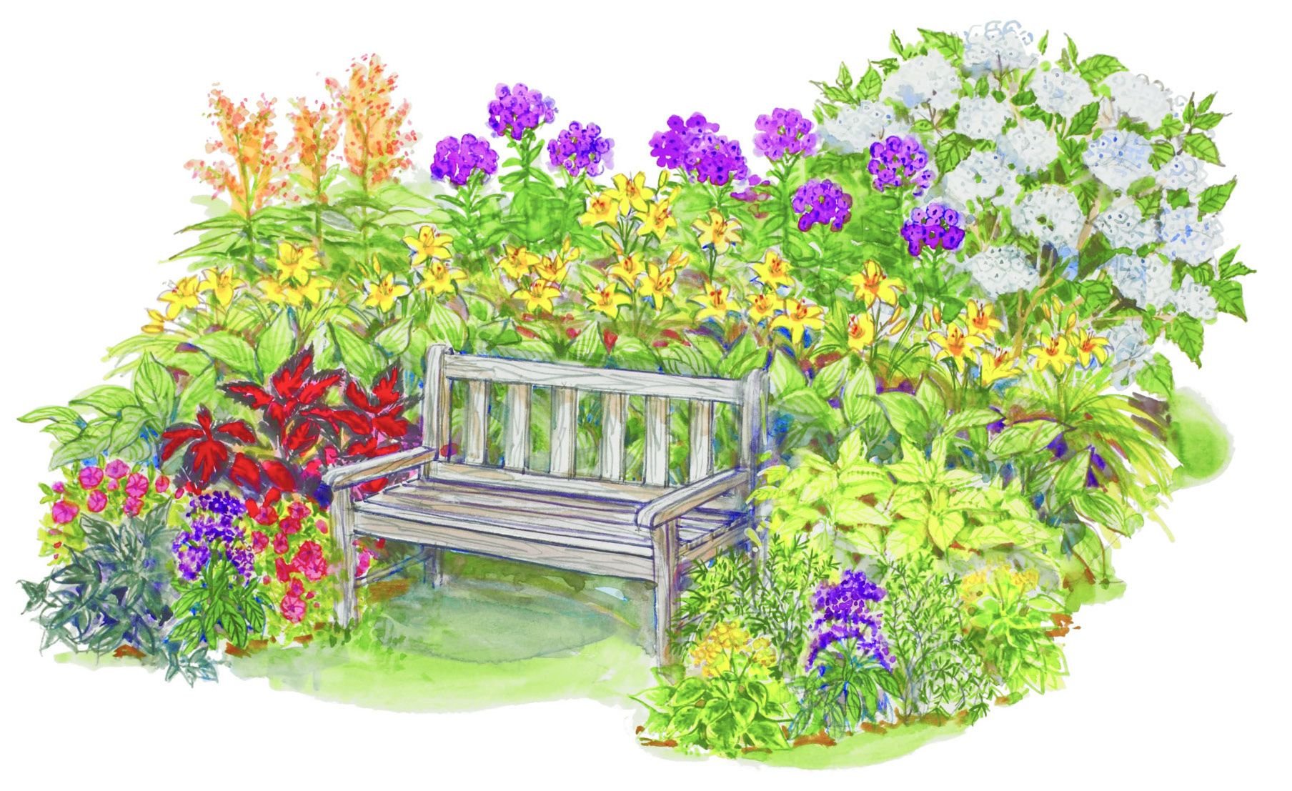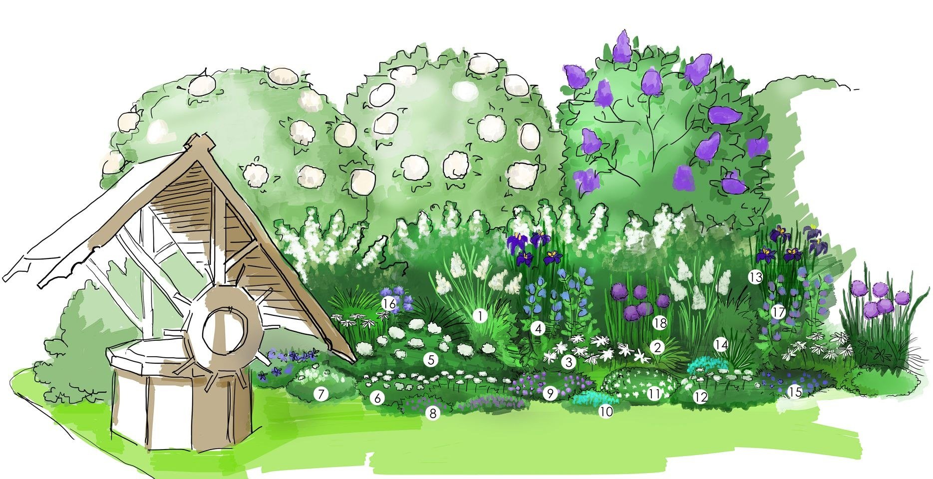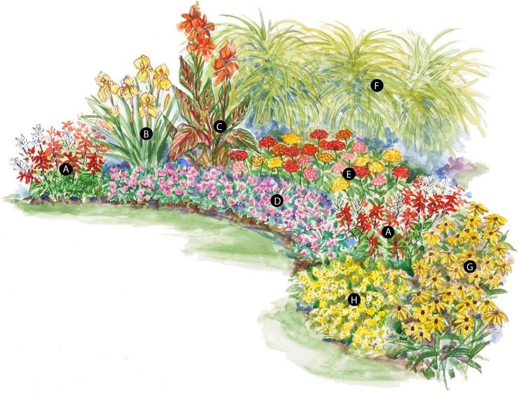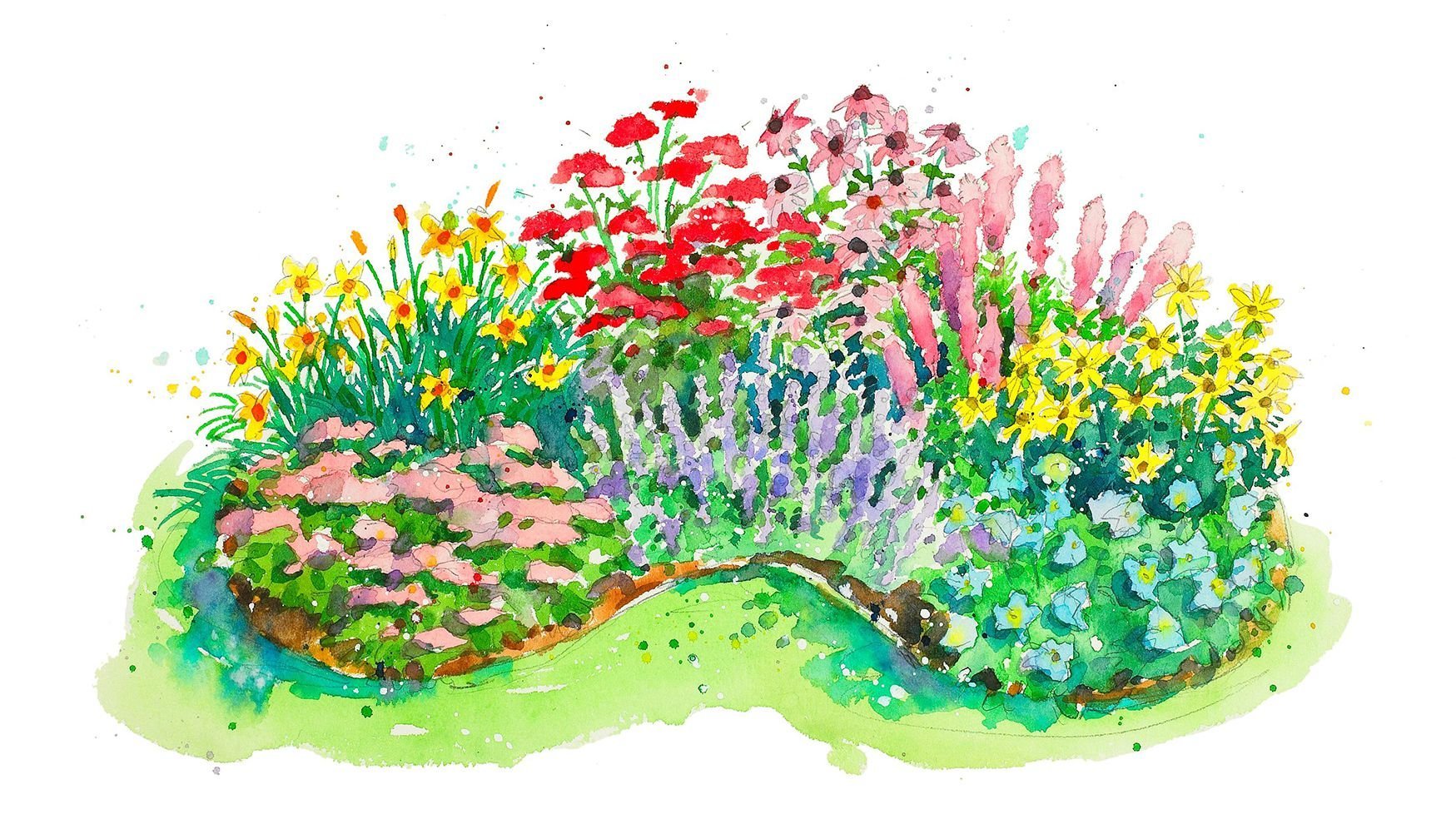 Клумба из луковичных схема непрерывного цветения из многолетников