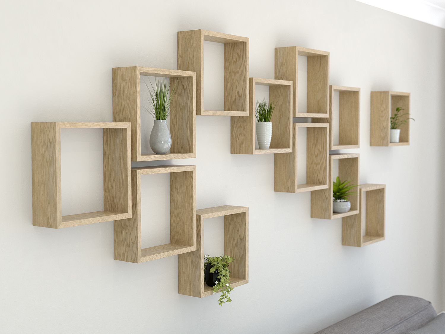 Варианты расположения квадратных полок на стене