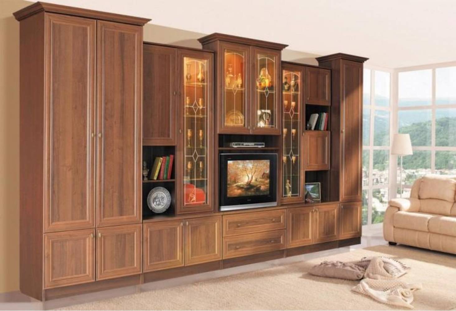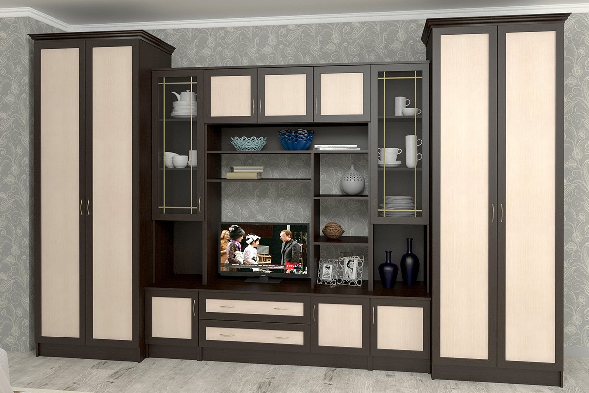 Классические стенки в гостиную без ниши под телевизор