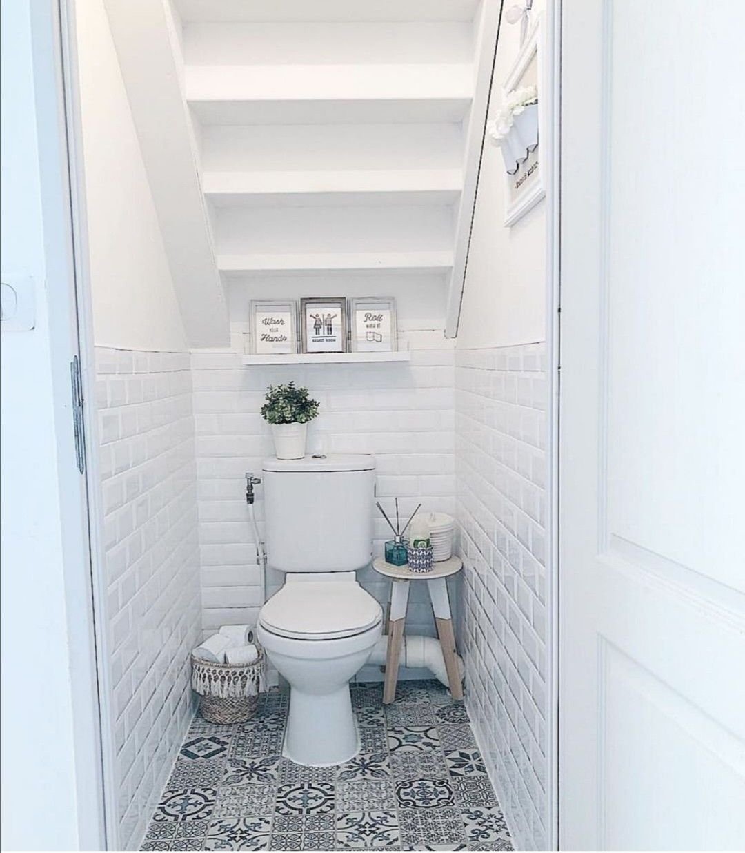 Интерьер туалета маленького под лестницей