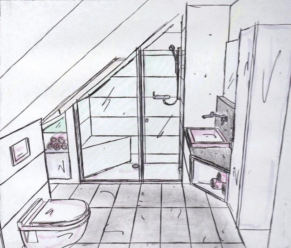 План санузла на мансарде