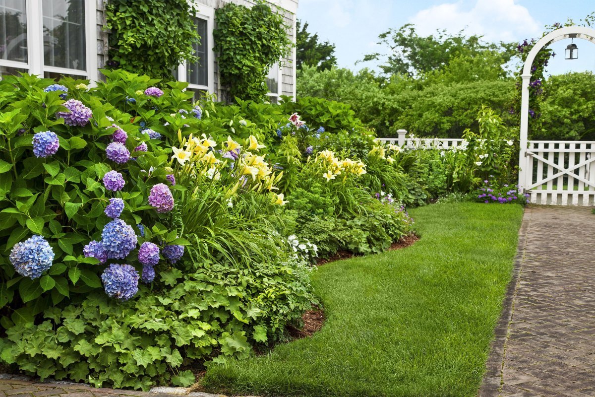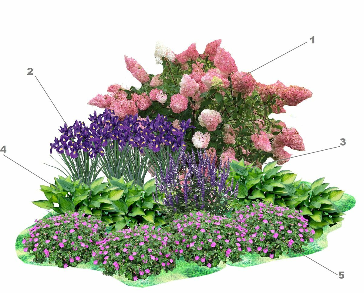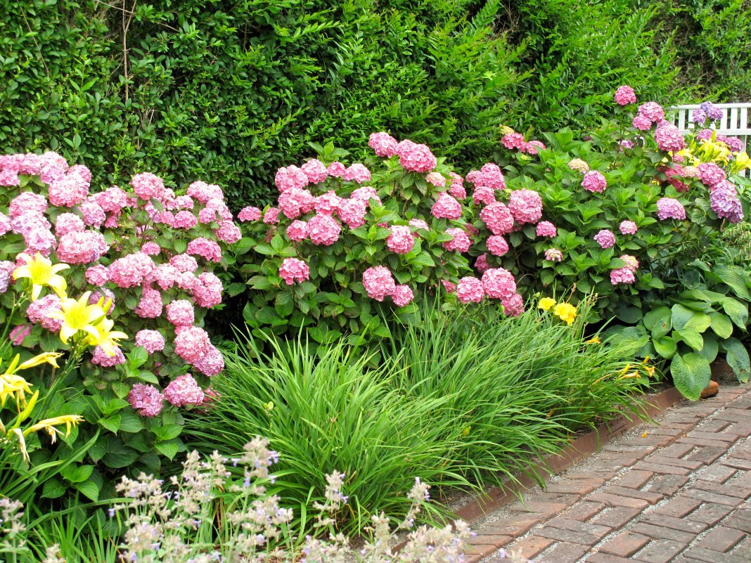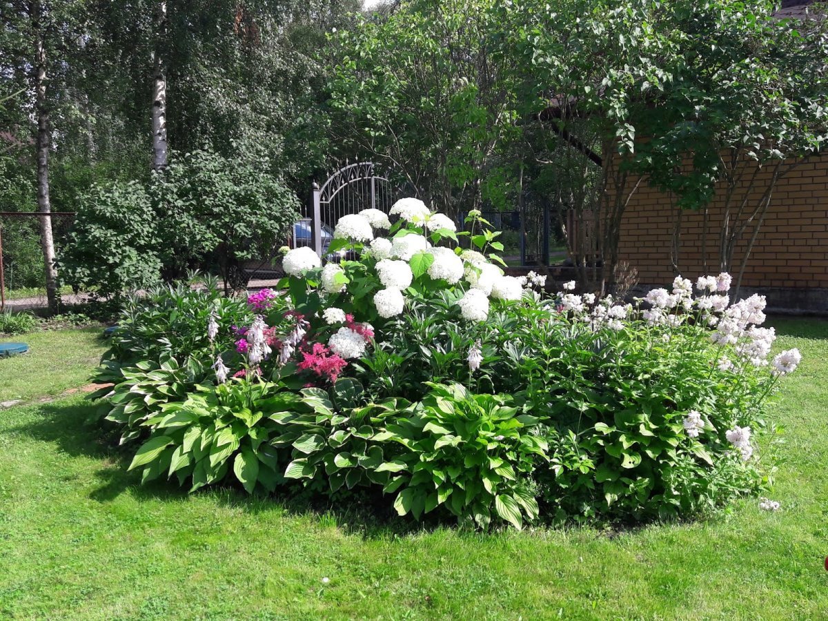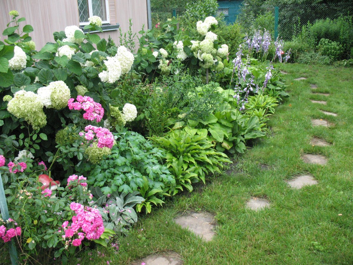 Миксбордер лилейник гортензия и Хоста