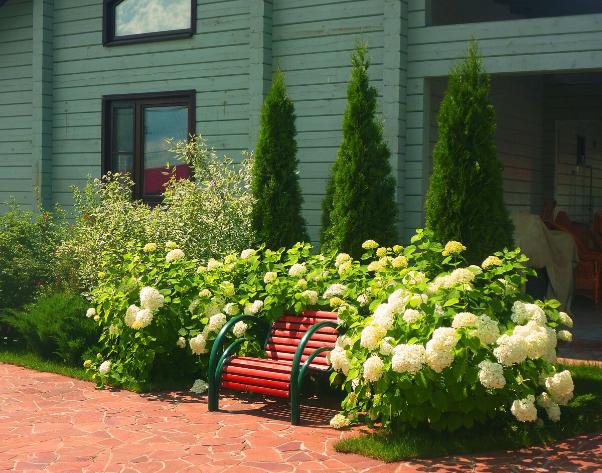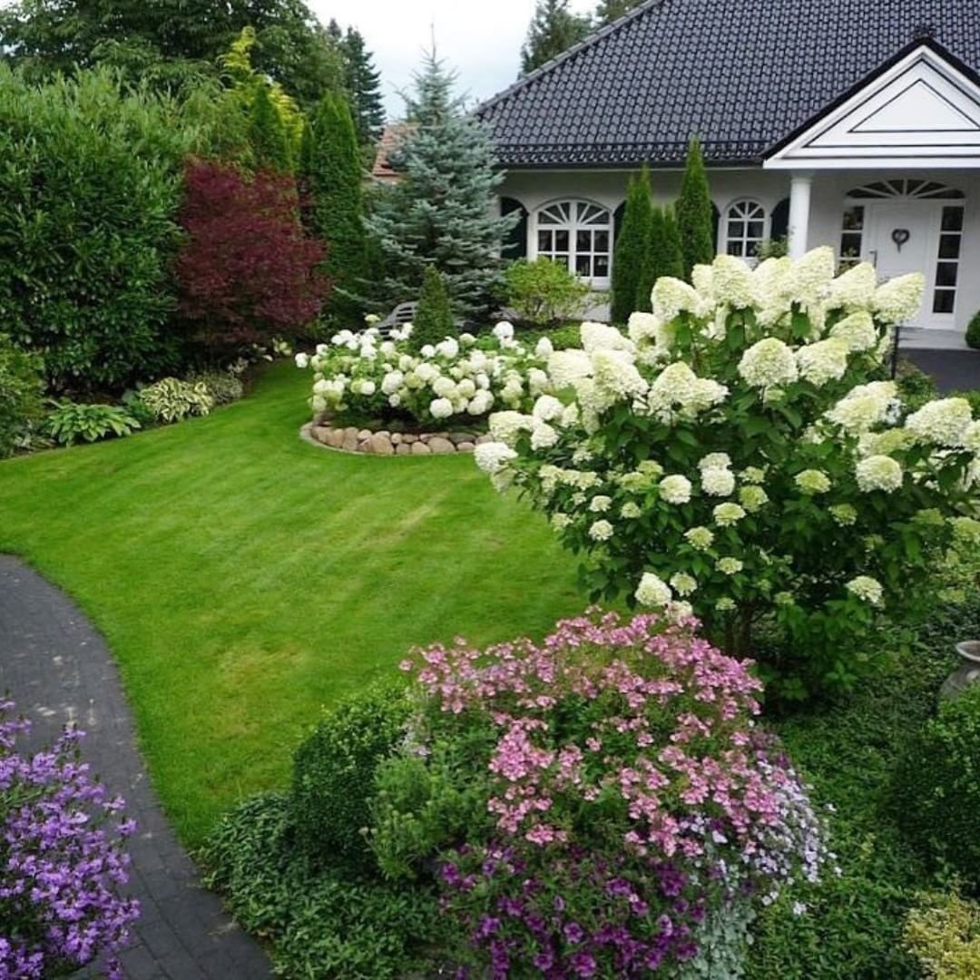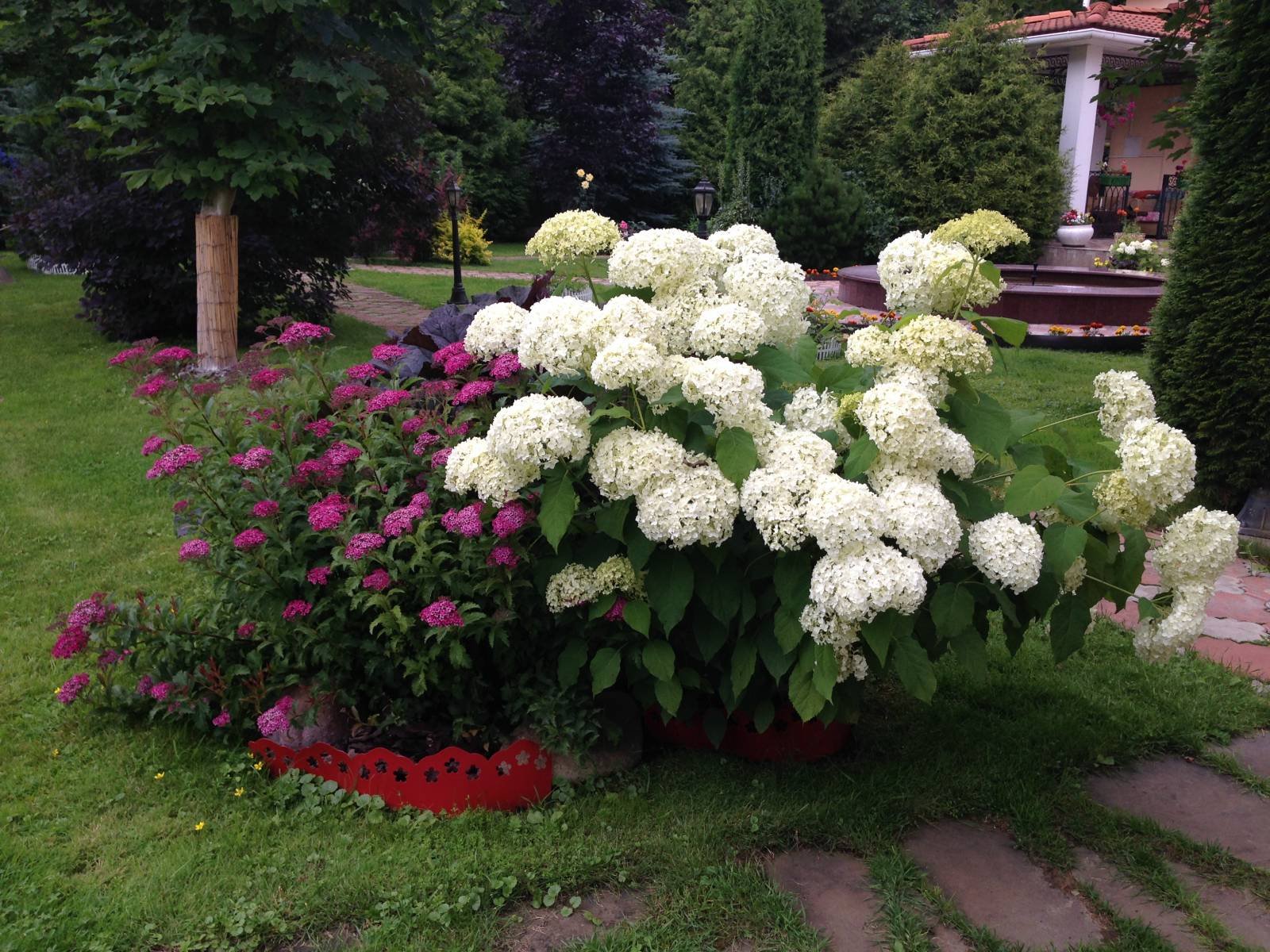 Клумба с гортензией и спиреей