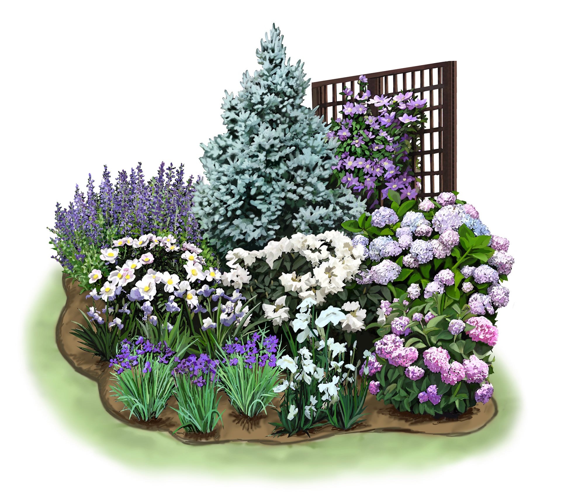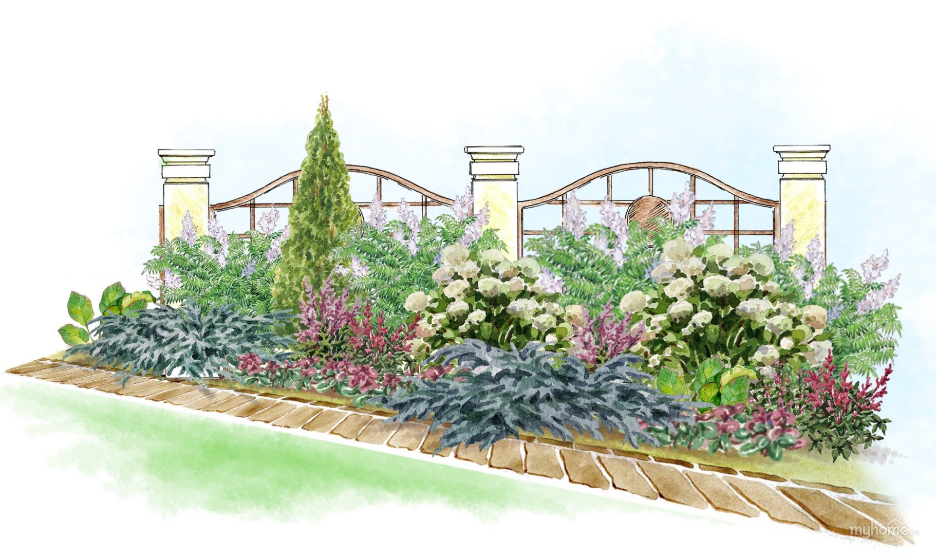 Миксбордер с гортензией метельчатой