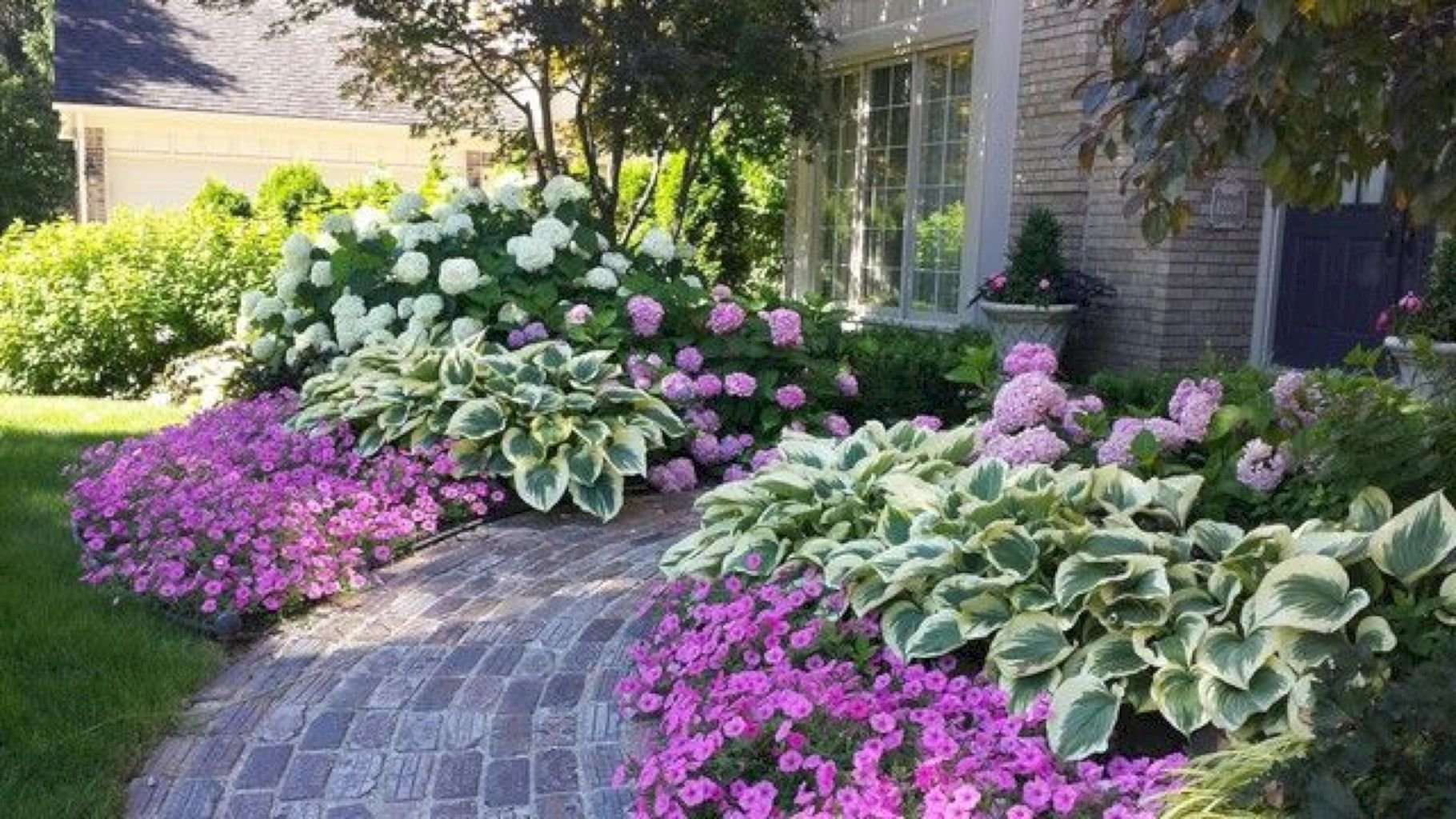 Клумба Хоста пион гортензия