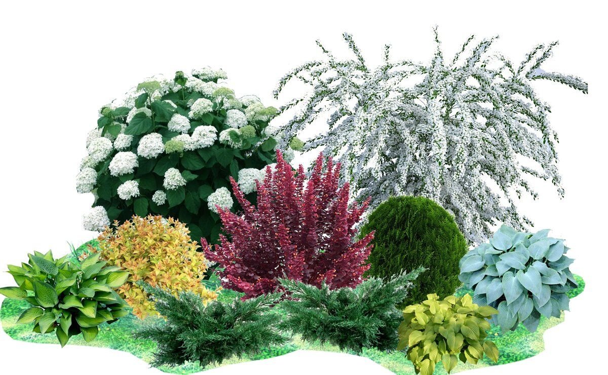 Схема цветника Барбарис, спирея