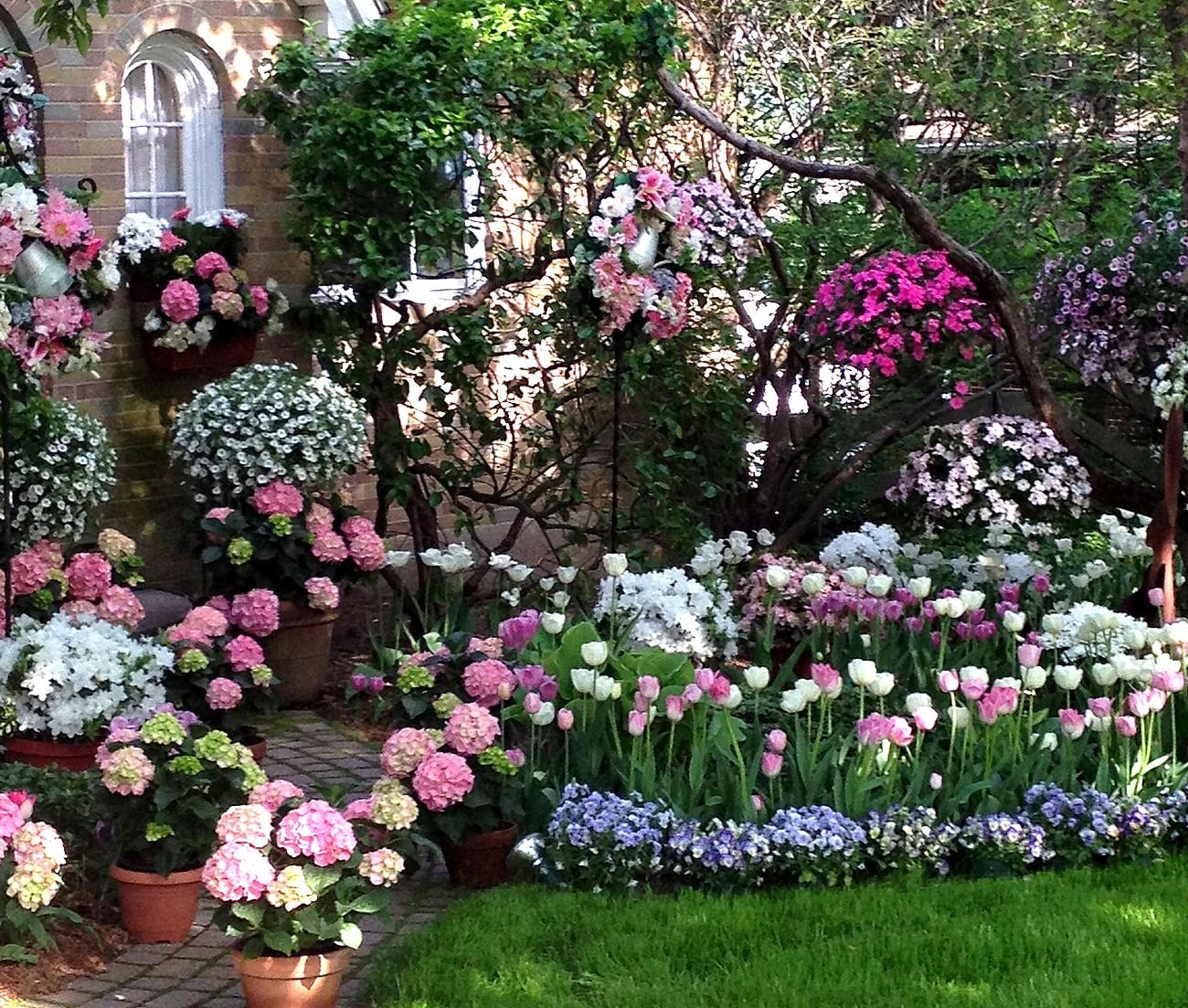 Клумбы с самшитом,хостой, гортензией