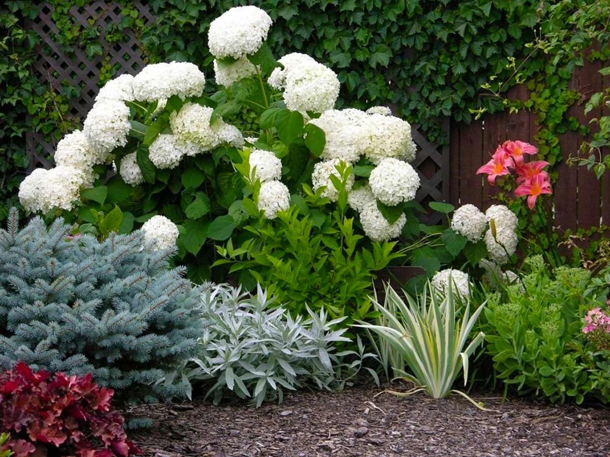 Миксбордер с гортензией Аннабель