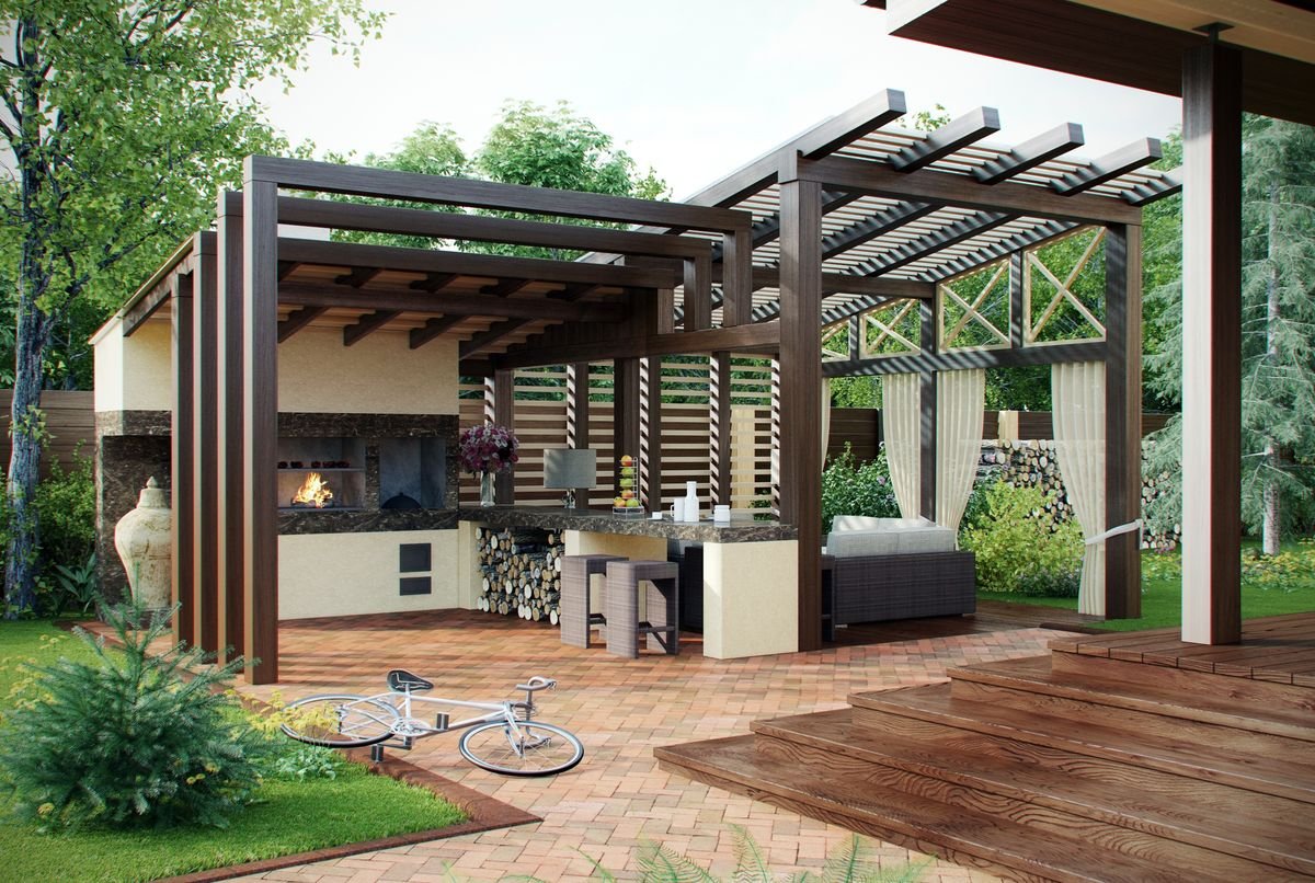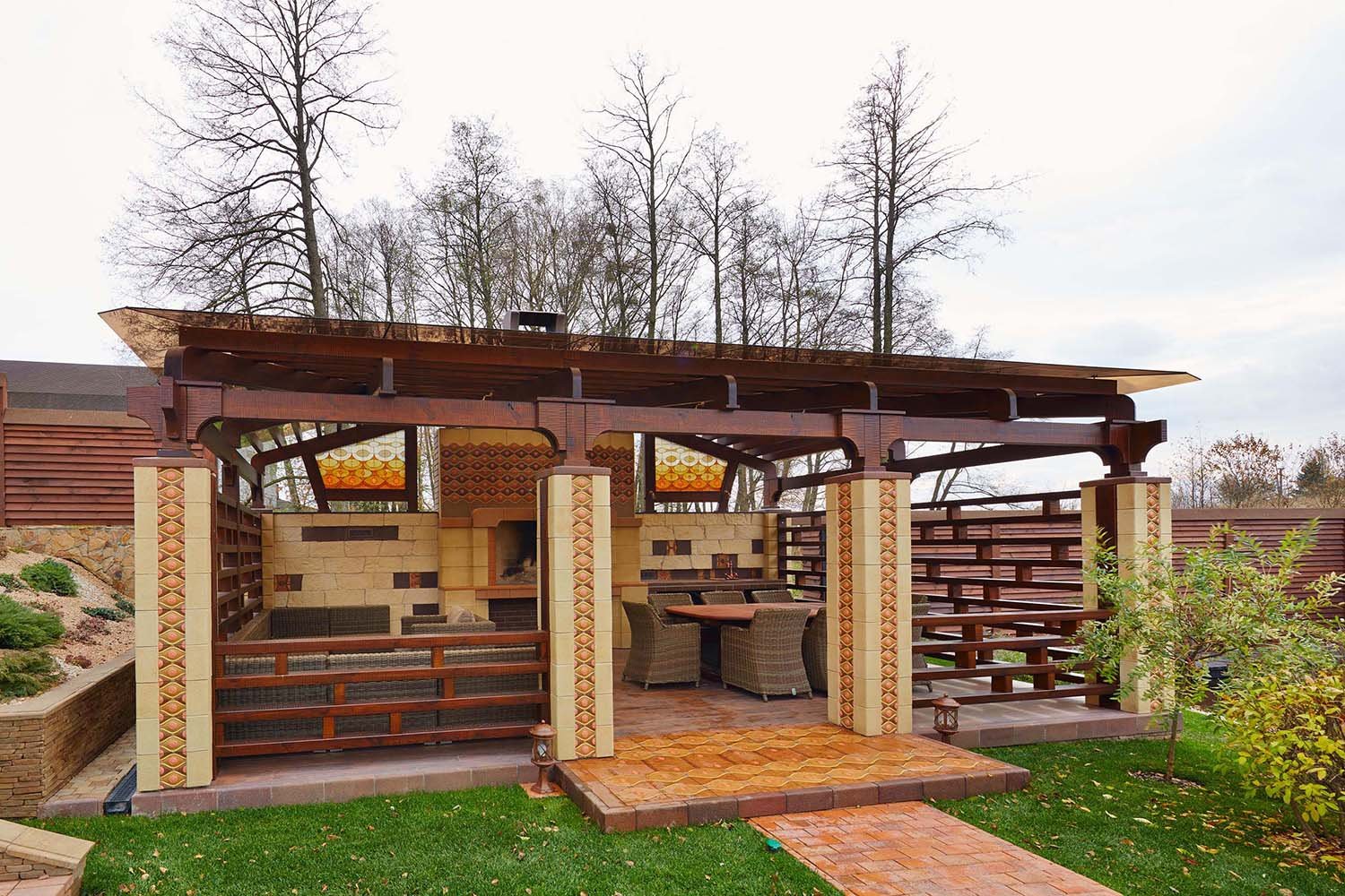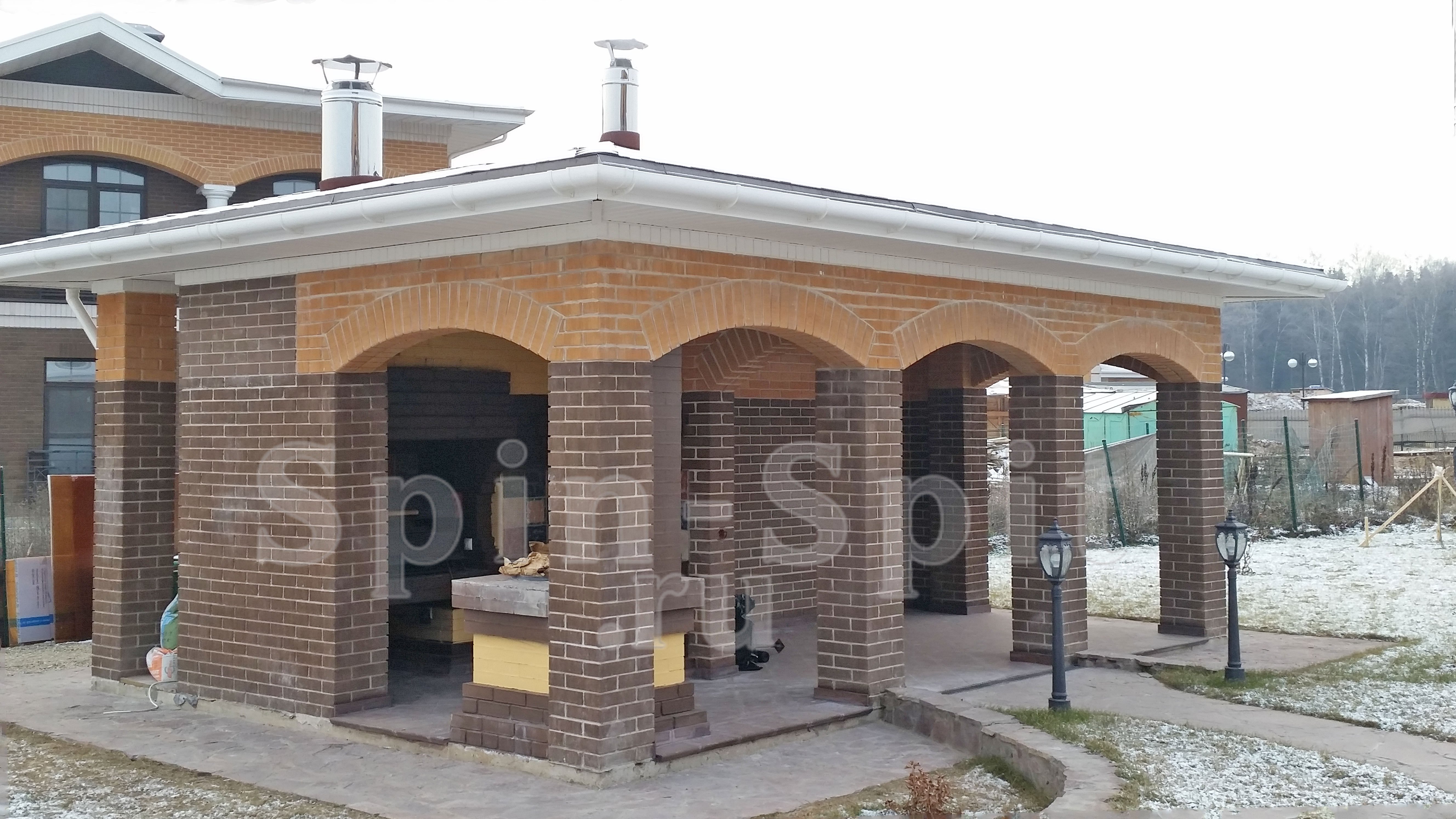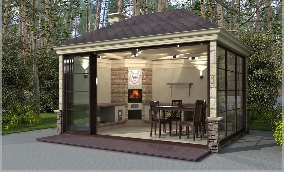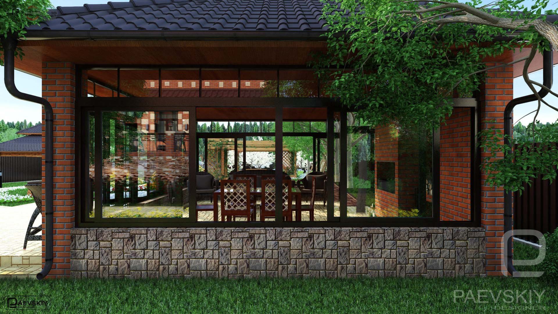 Баня с террасой и мангальной зоной и бассейном под крышей