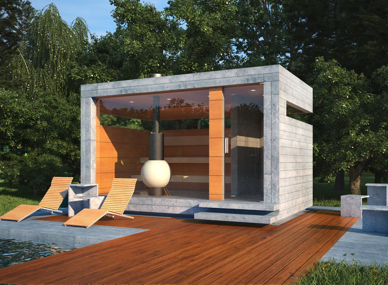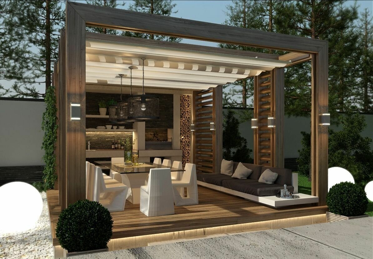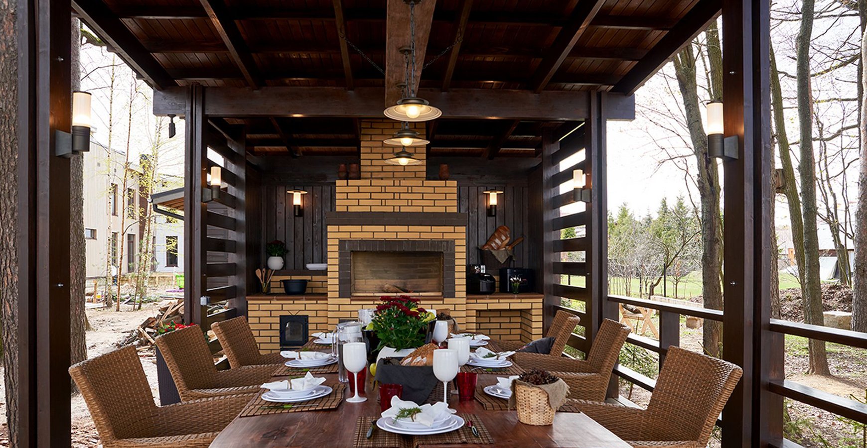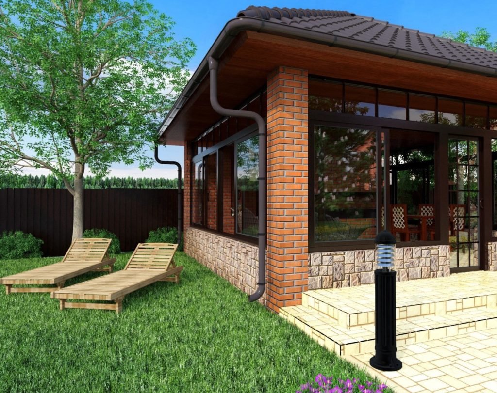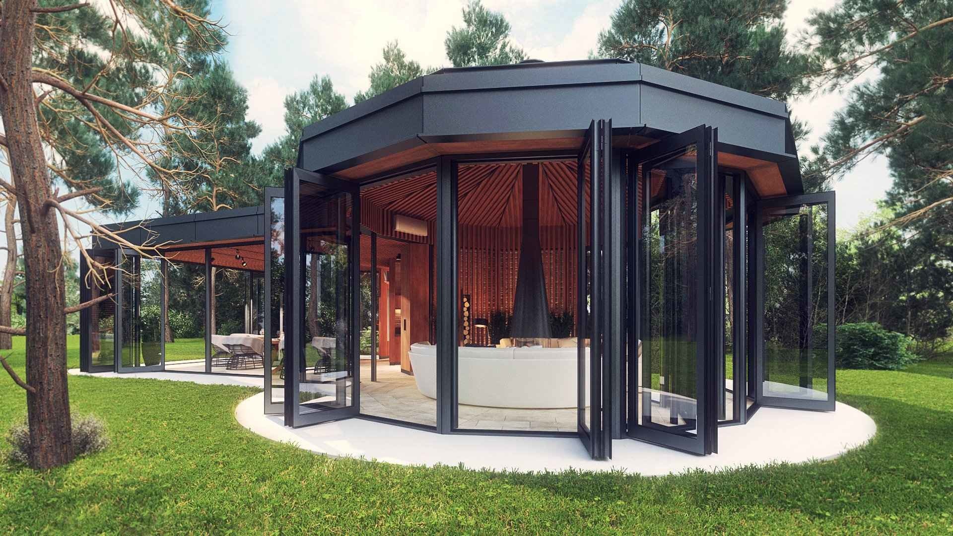 Баня с террасой и мангальной зоной и бассейном под крышей