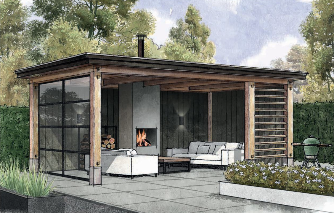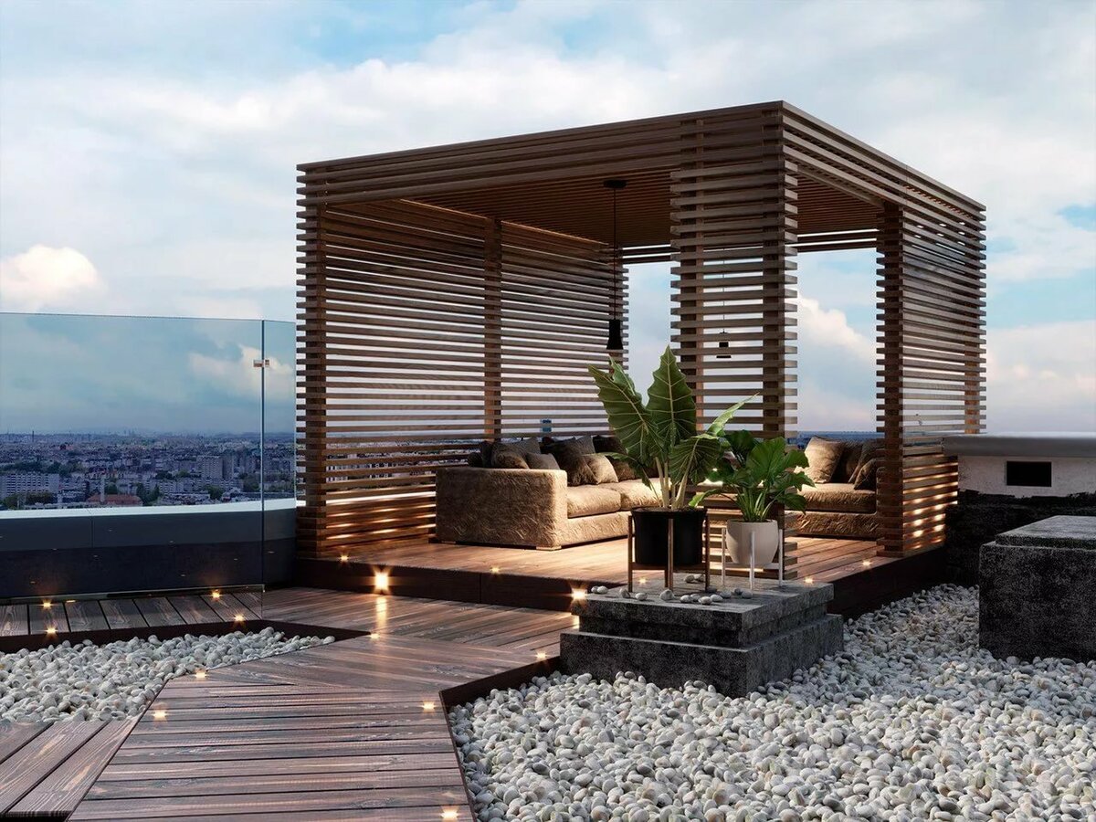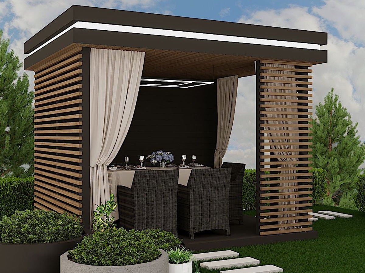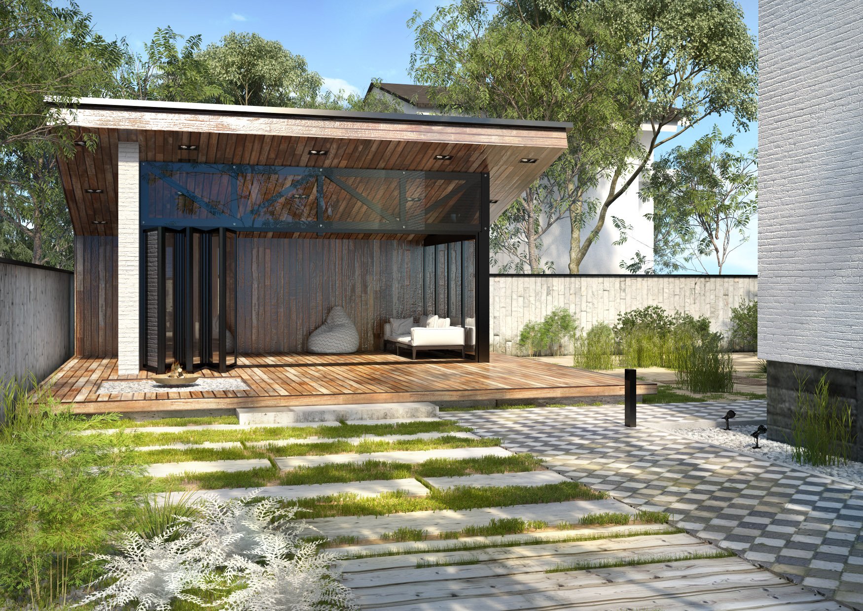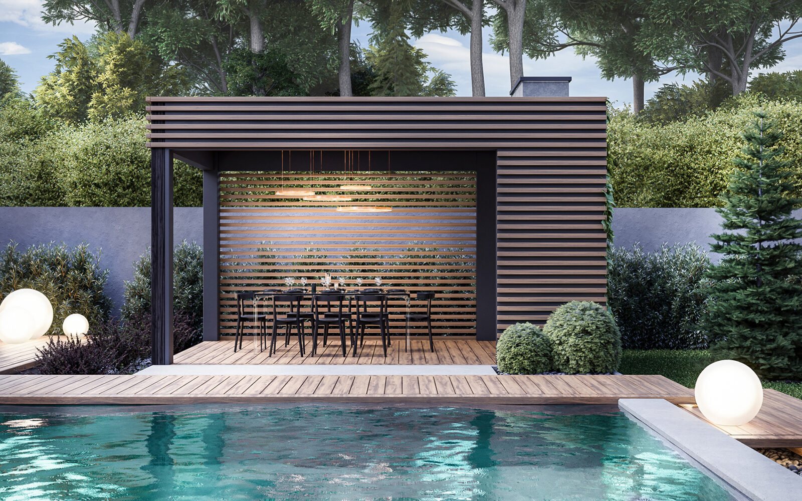 Баня с террасой и мангальной зоной и бассейном под крышей