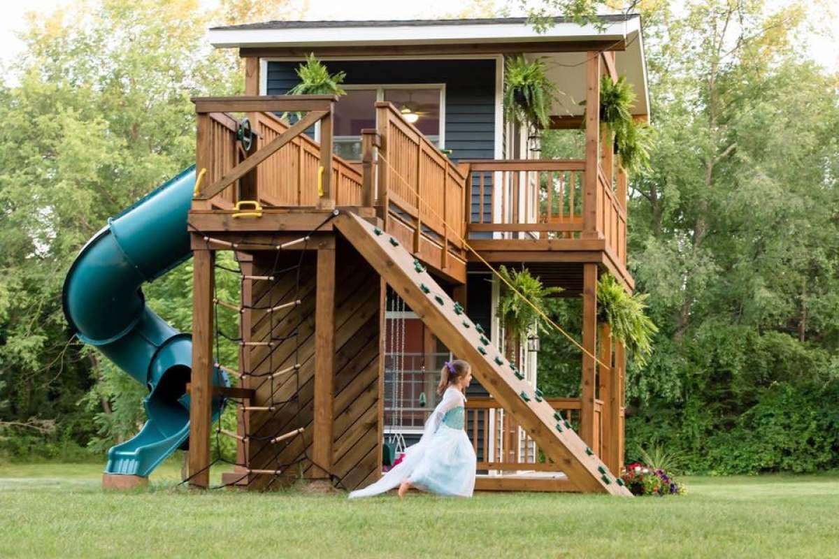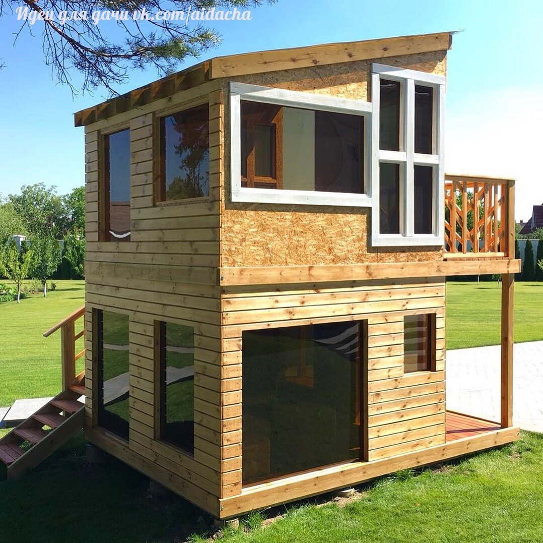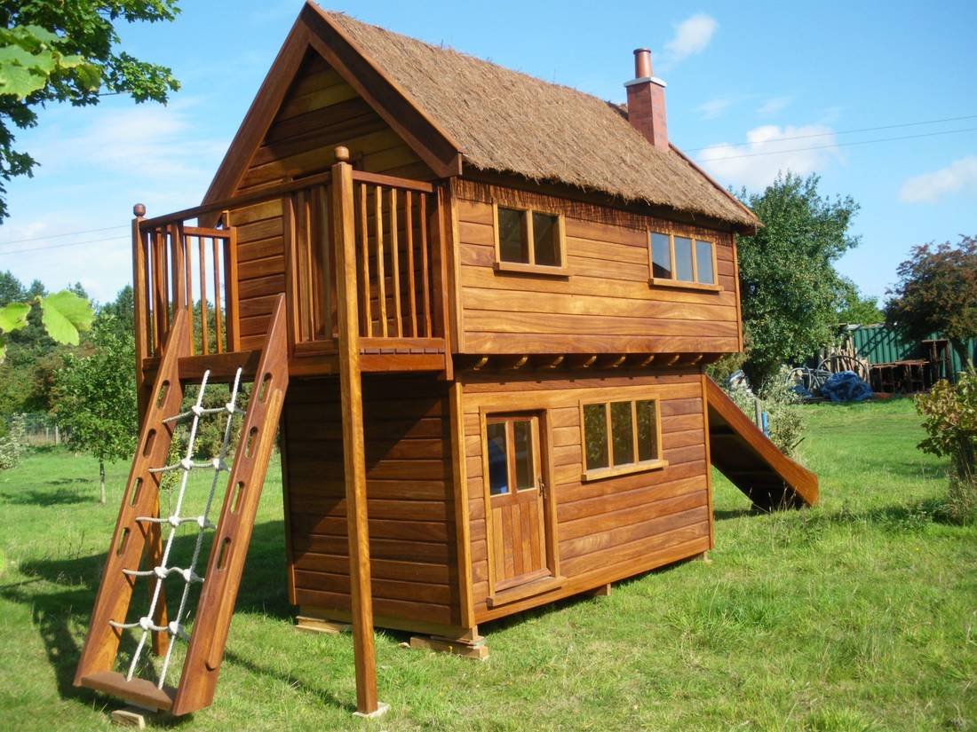 Детский домик для дачи из дерева двухэтажные