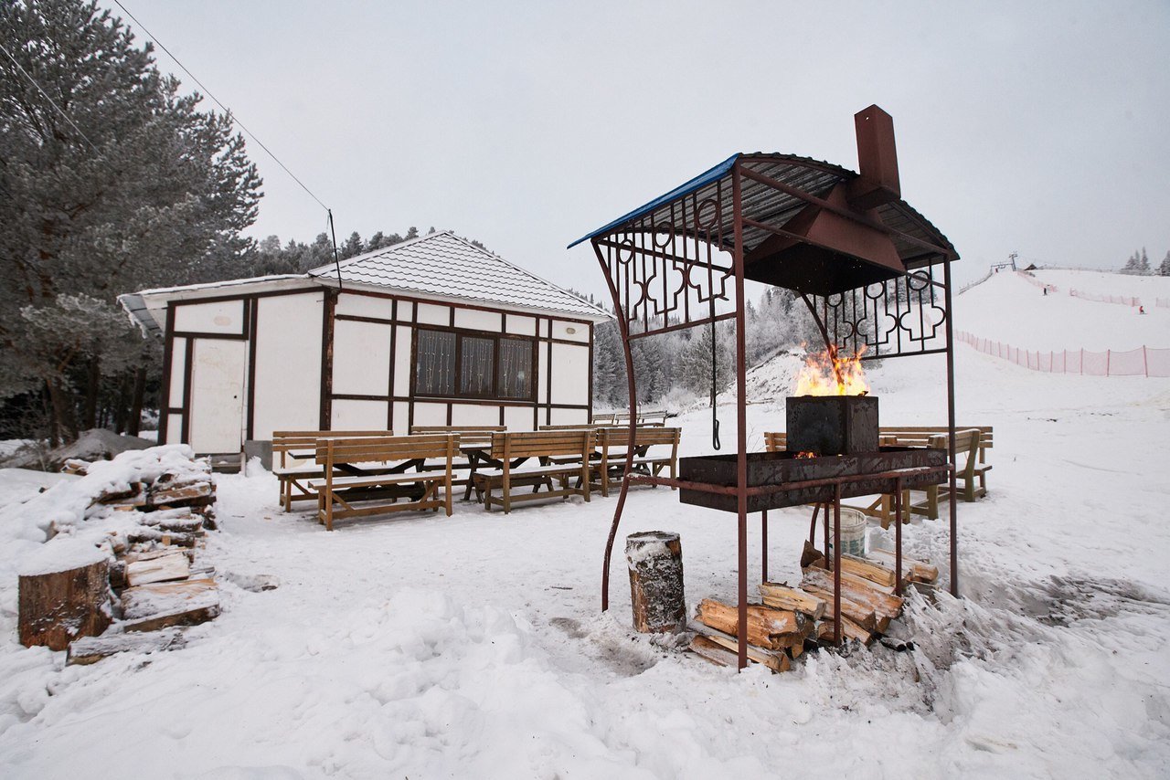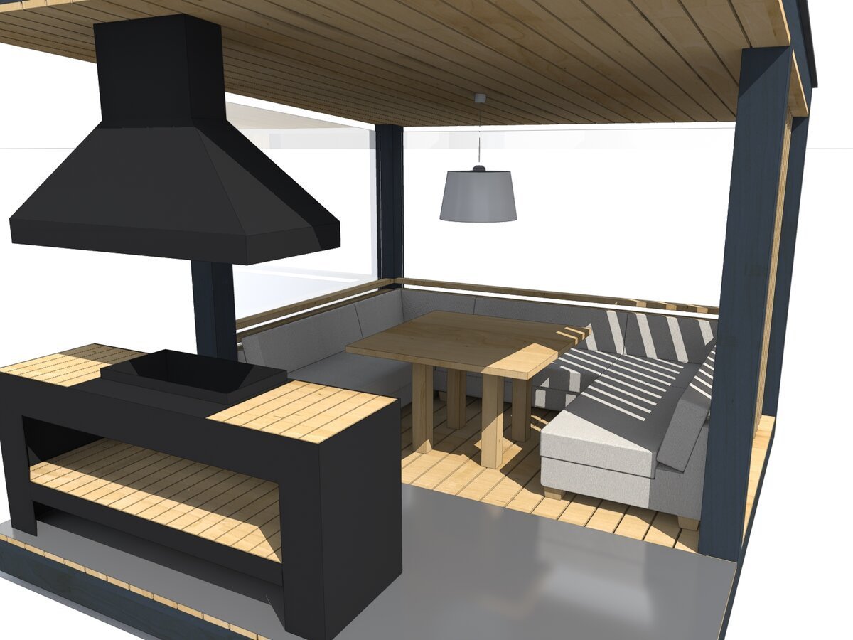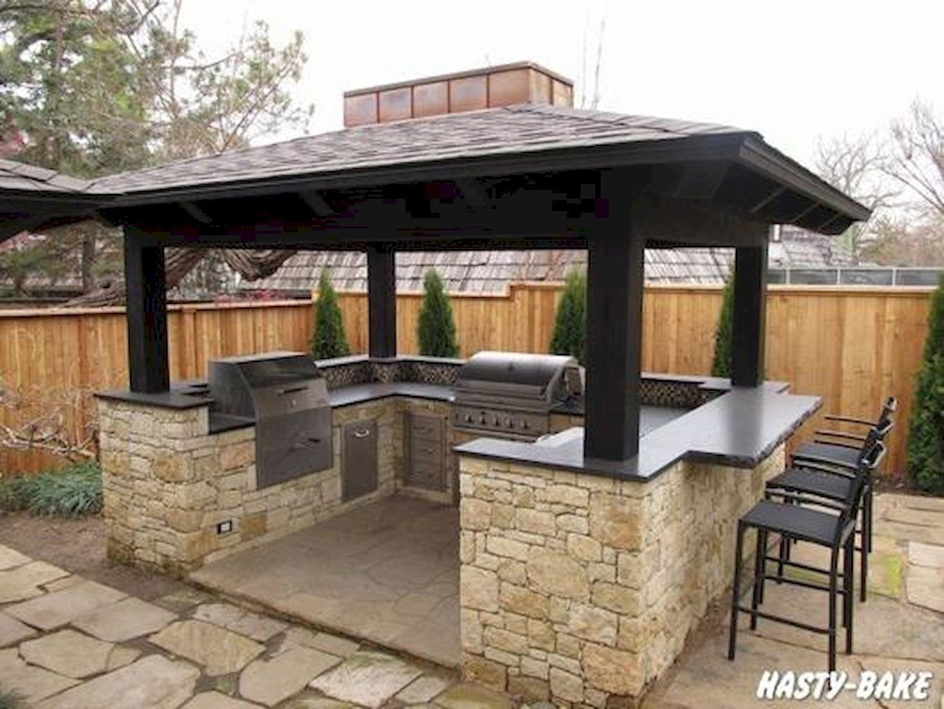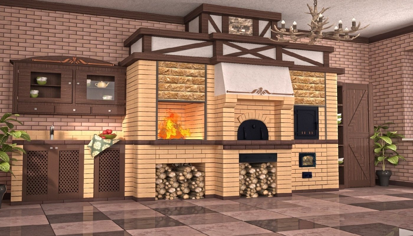 Угловой барбекю мангальная зона с коптильней и печью из кирпича