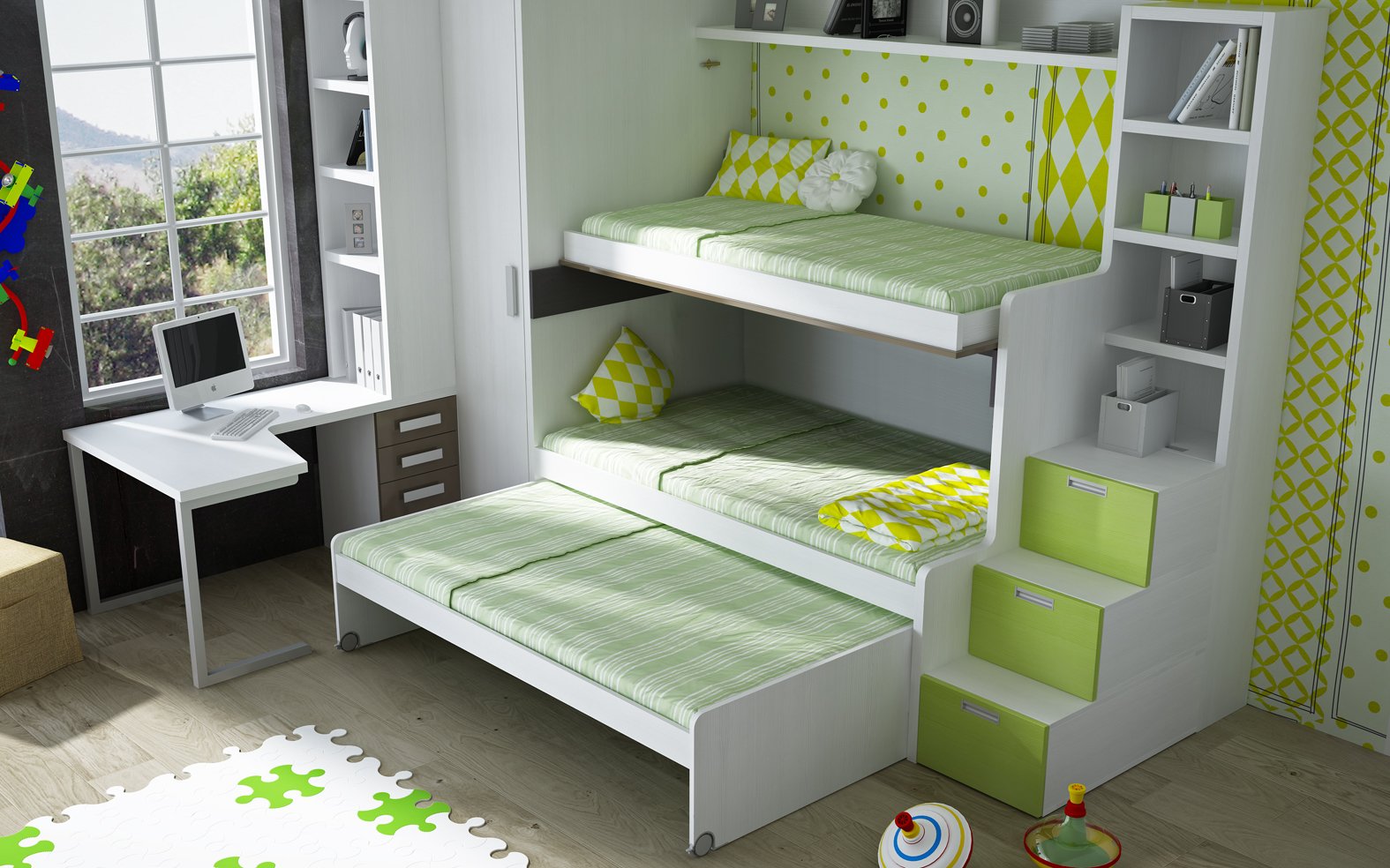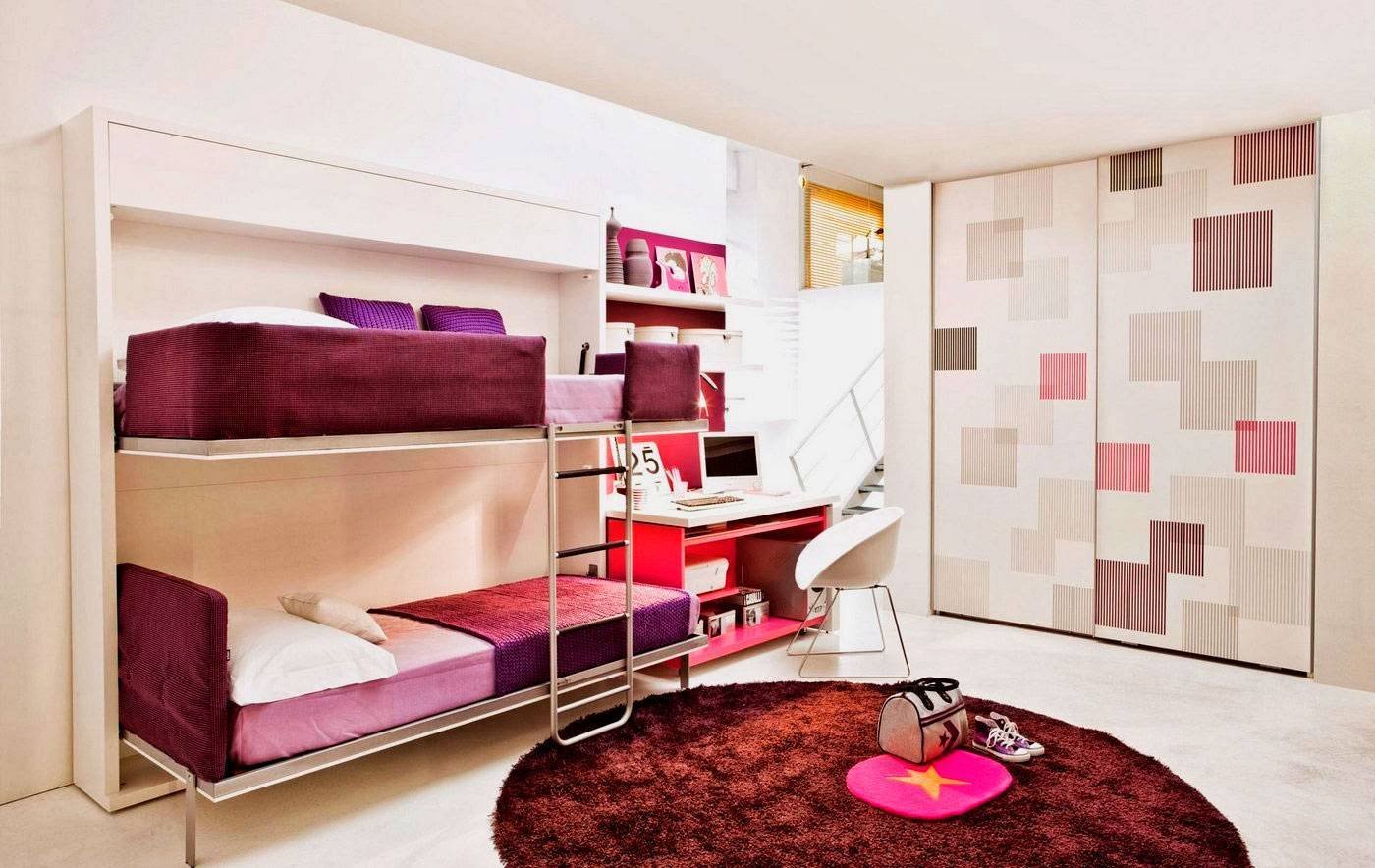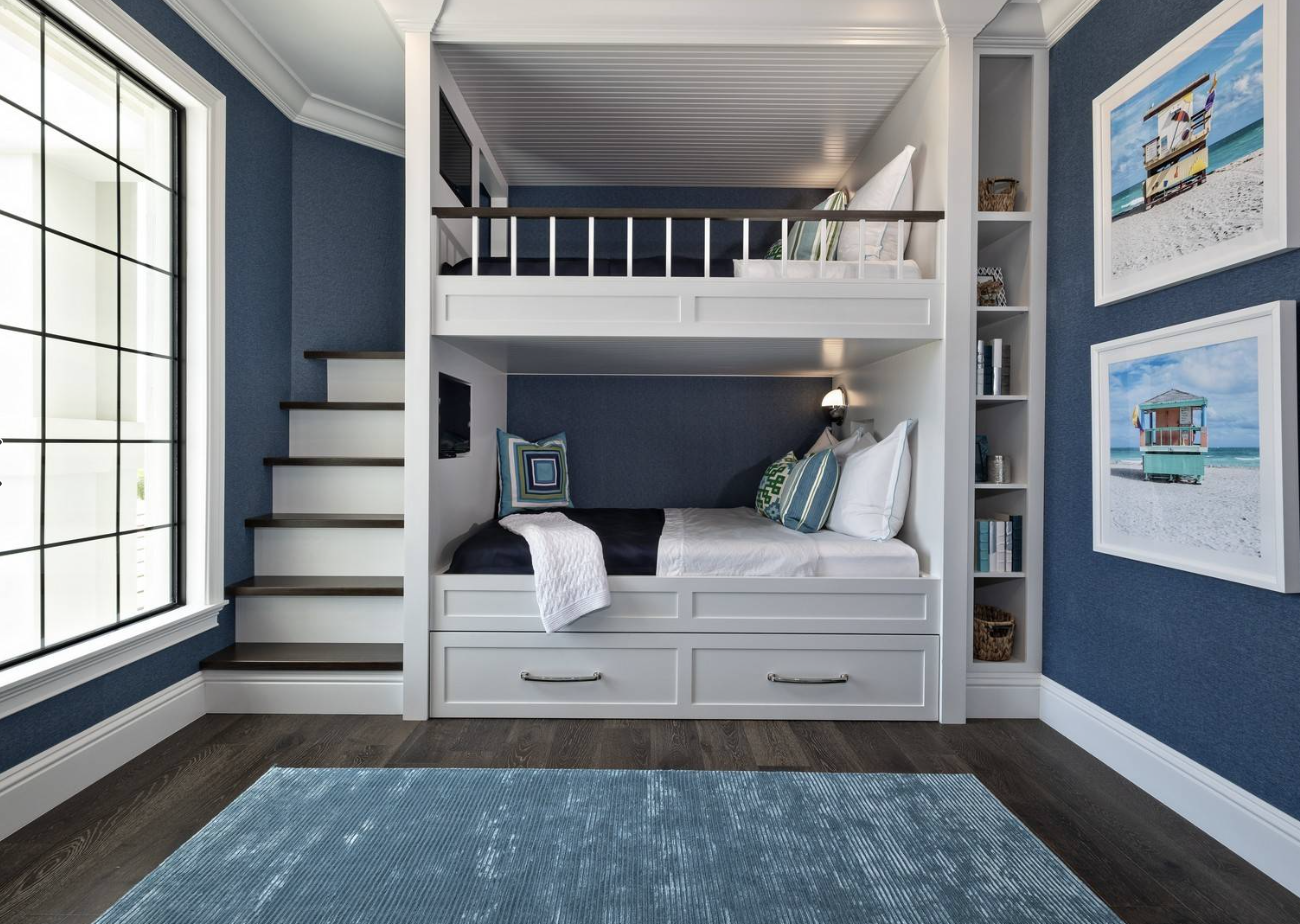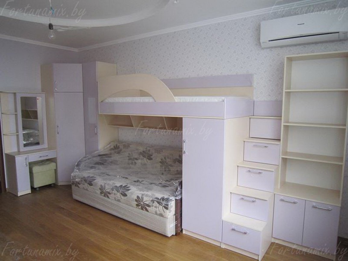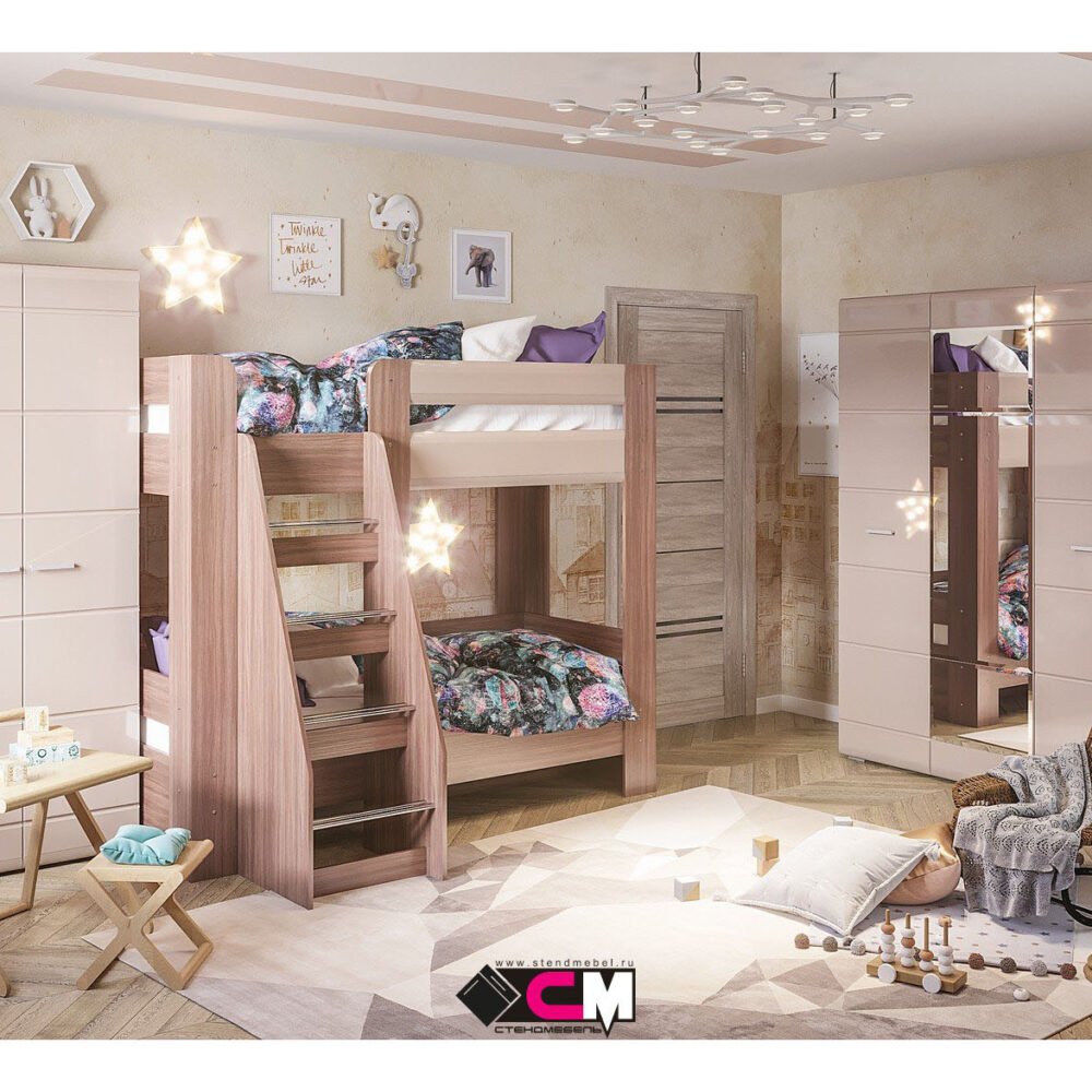 Детская комната с двухъярусной кроватью и угловым шкафом