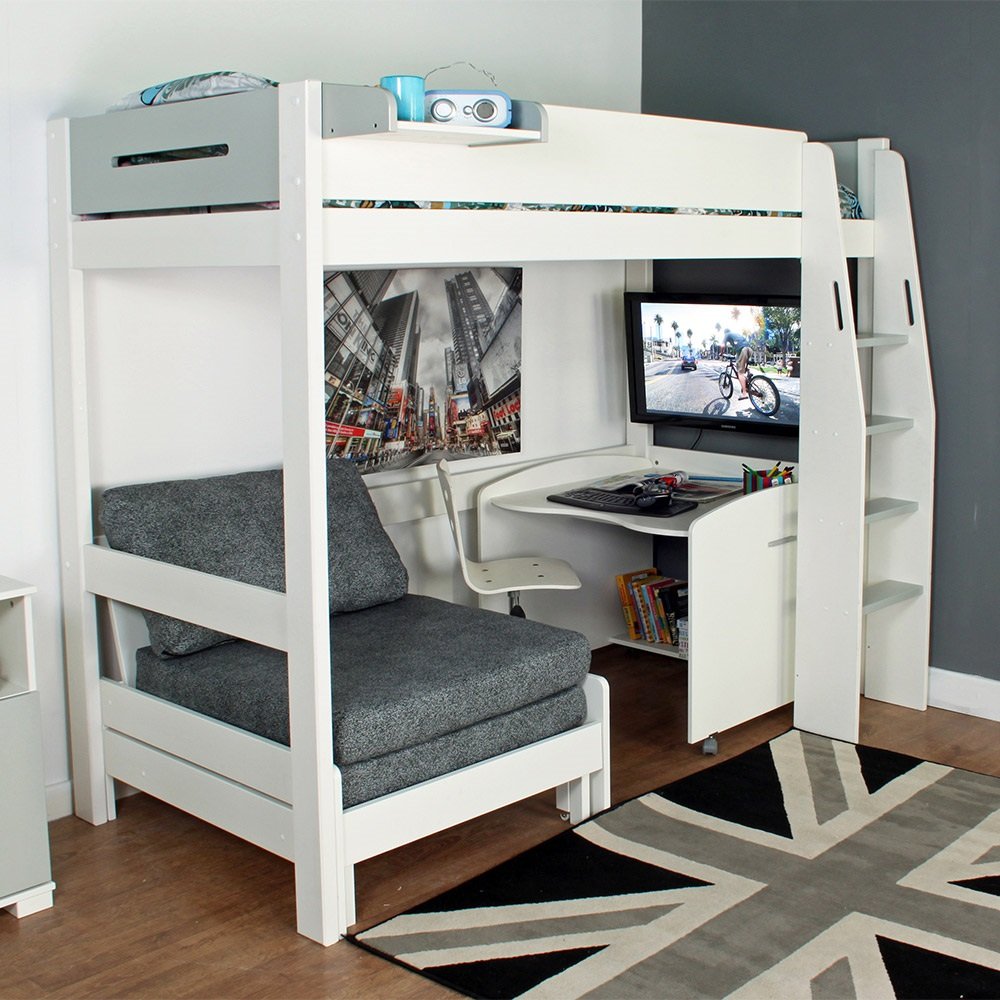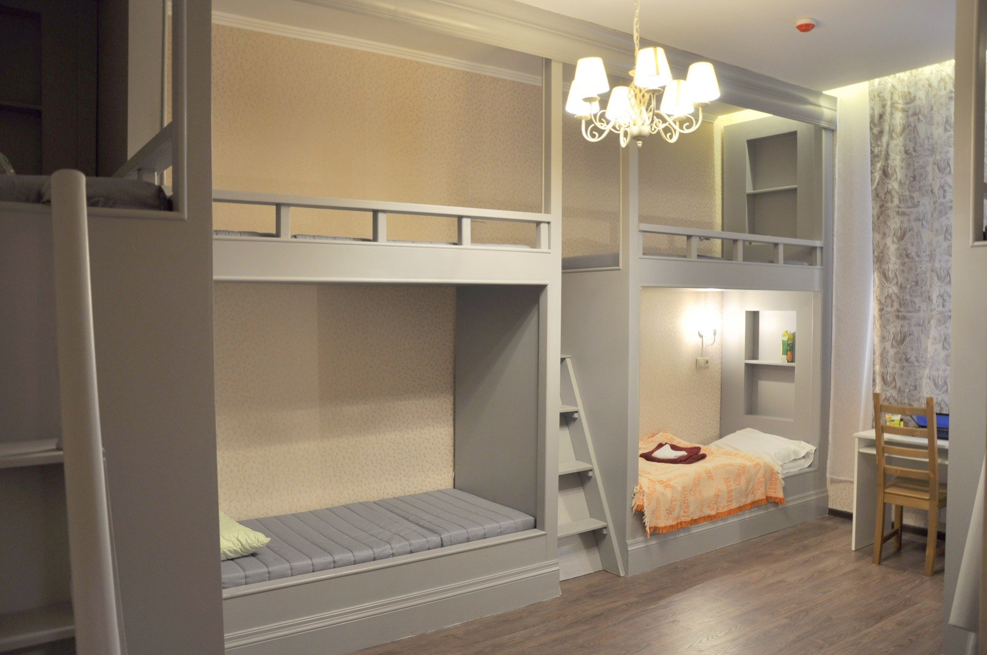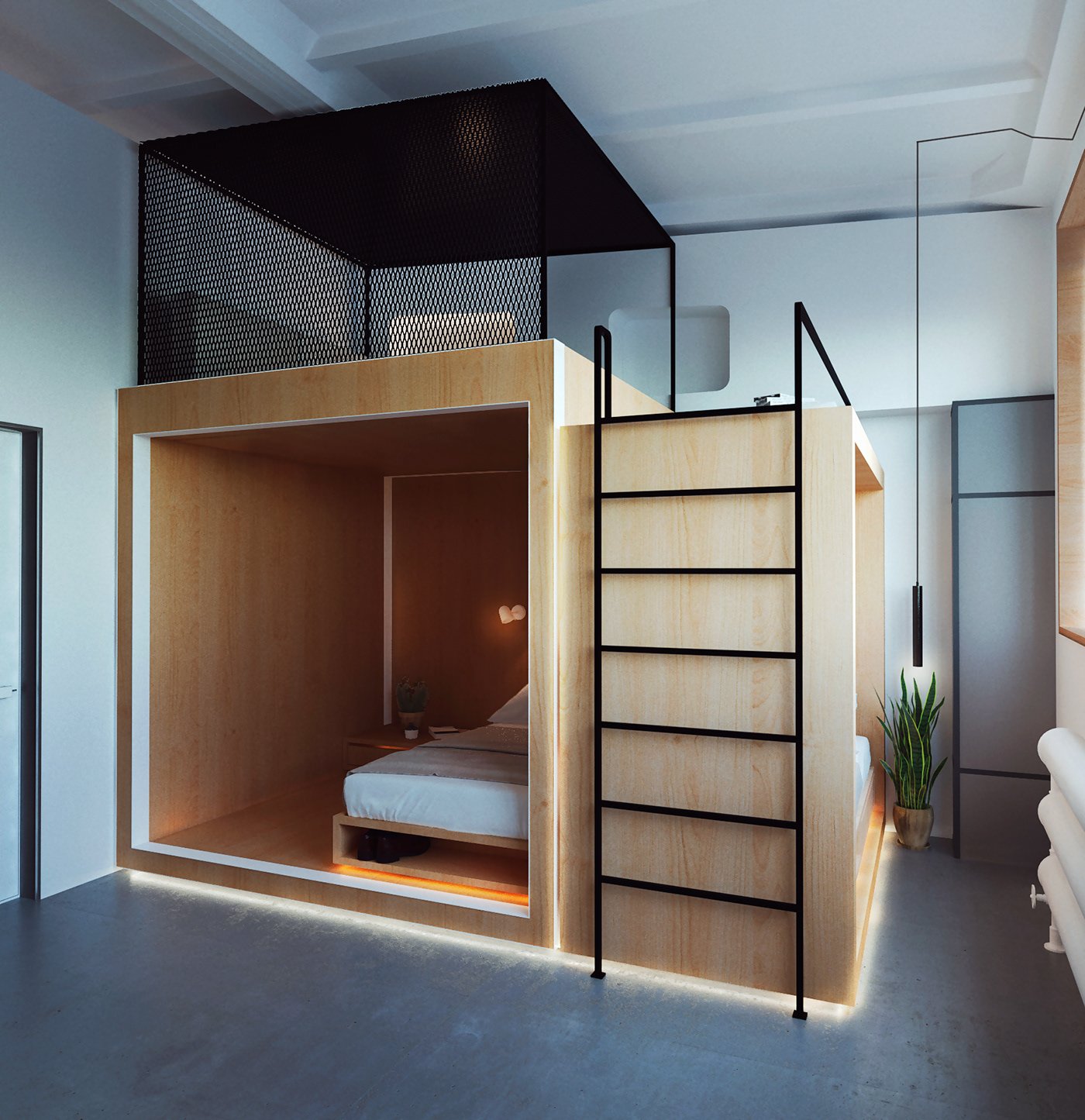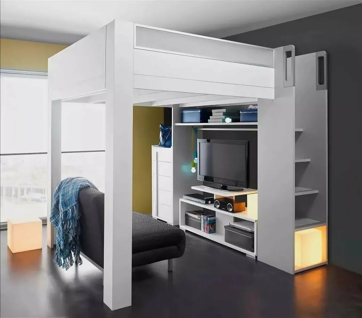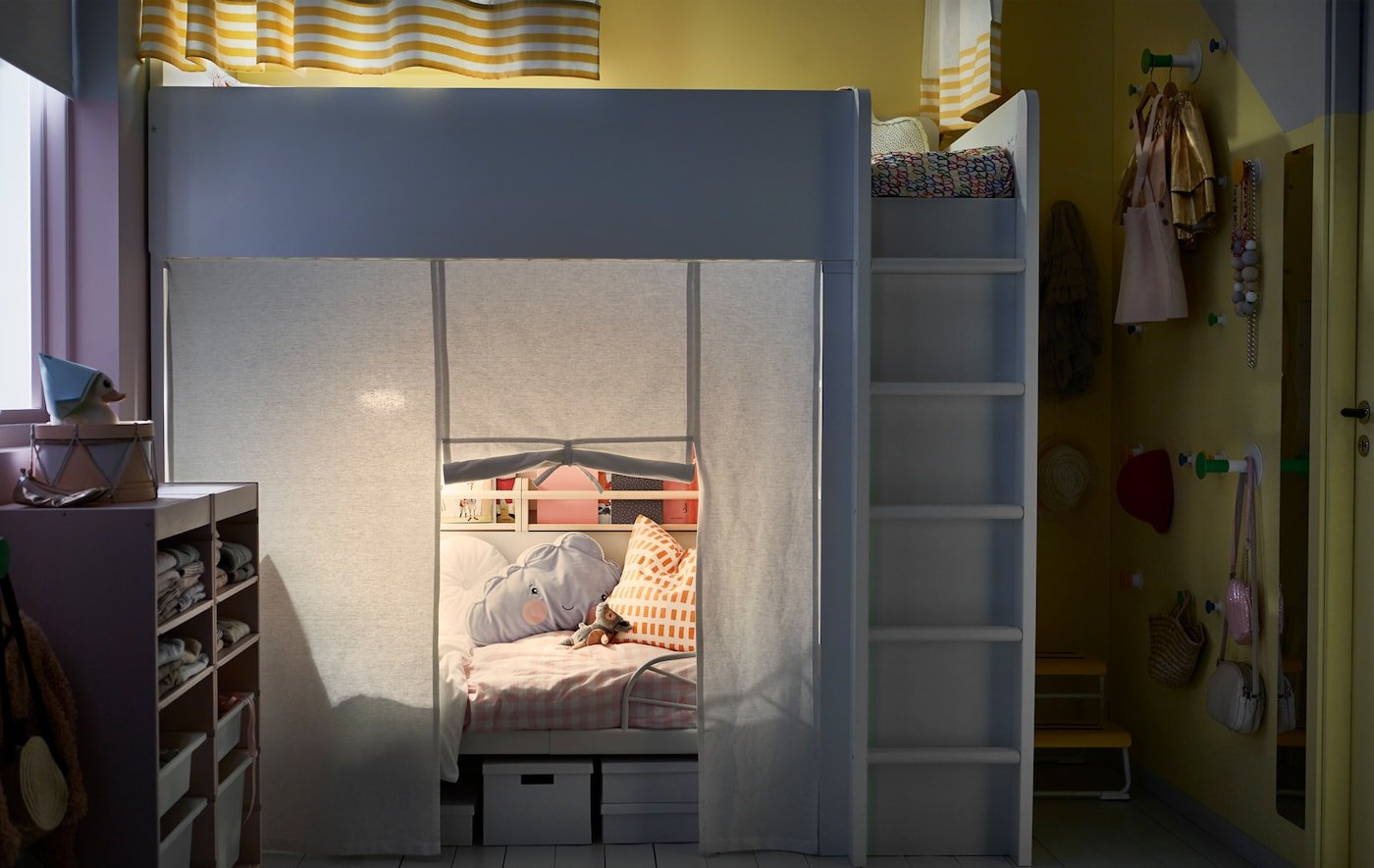 Детская комната с двухъярусной кроватью и угловым шкафом