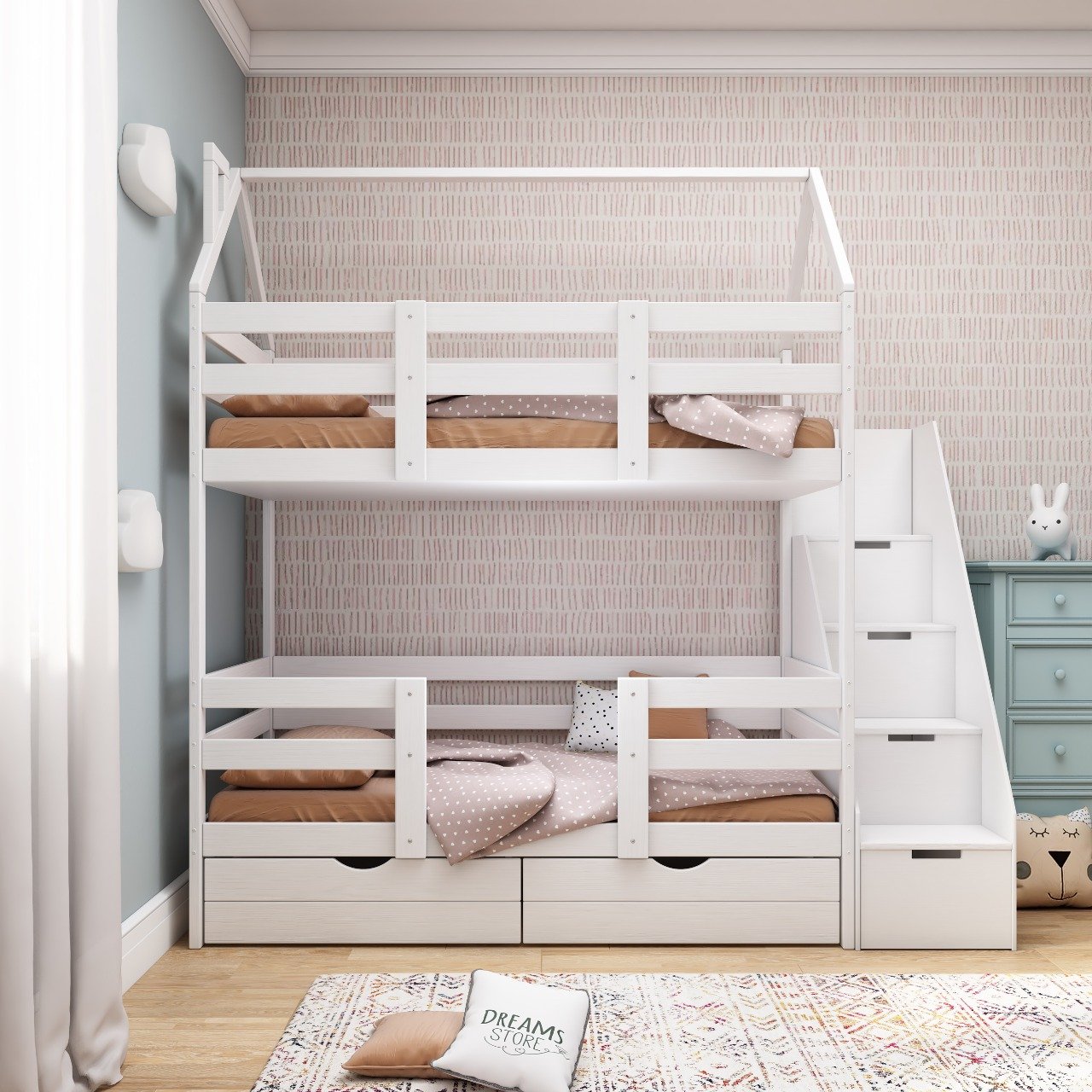 Кроватка-домик "двухъярусная" (белый, 180*90, м)