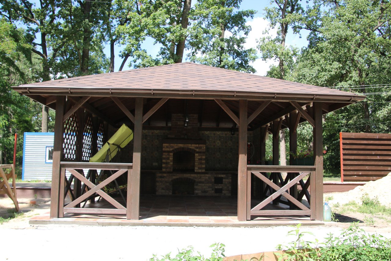 Деревянная беседка с мангалом