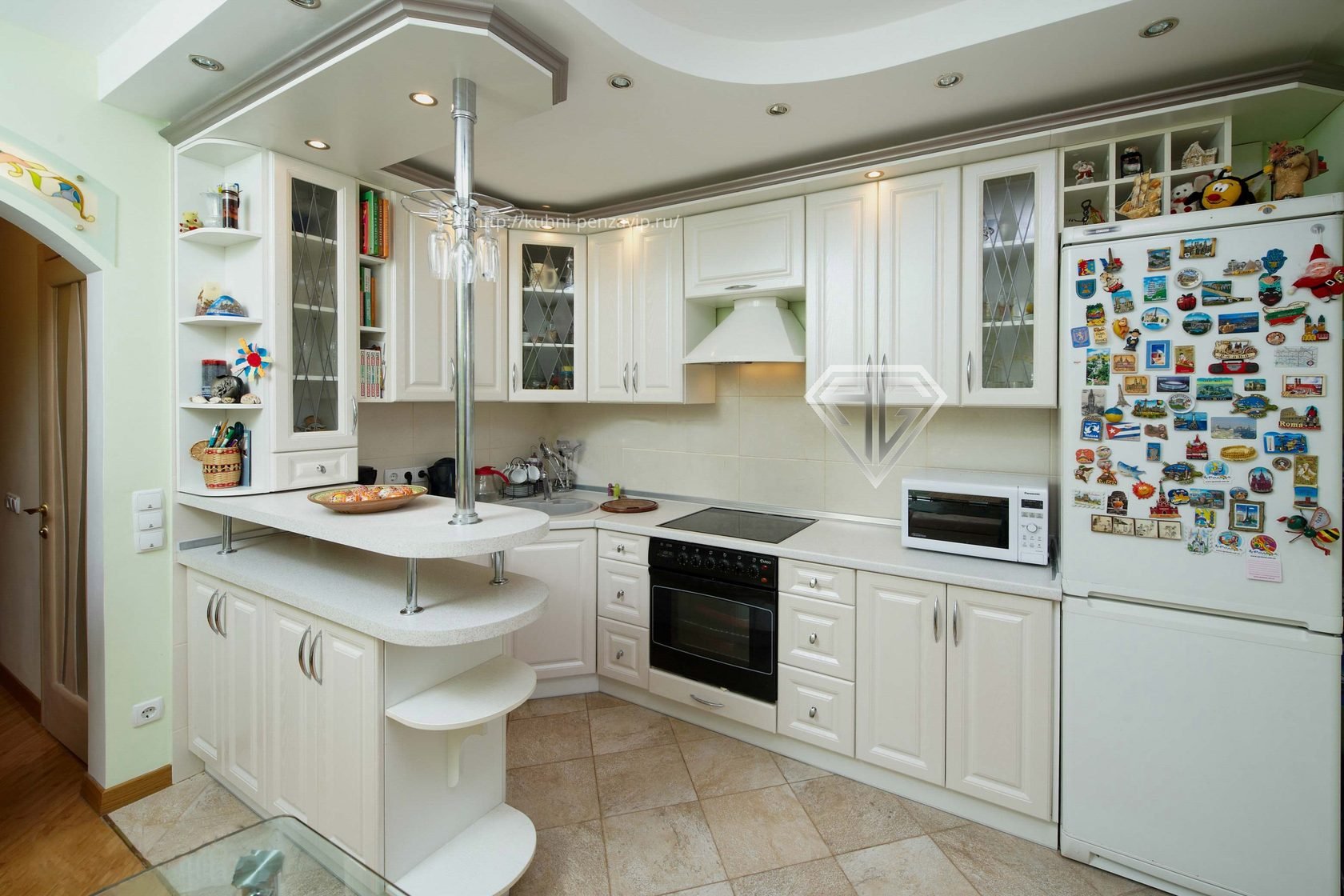 Белая кухня с барной стойкой