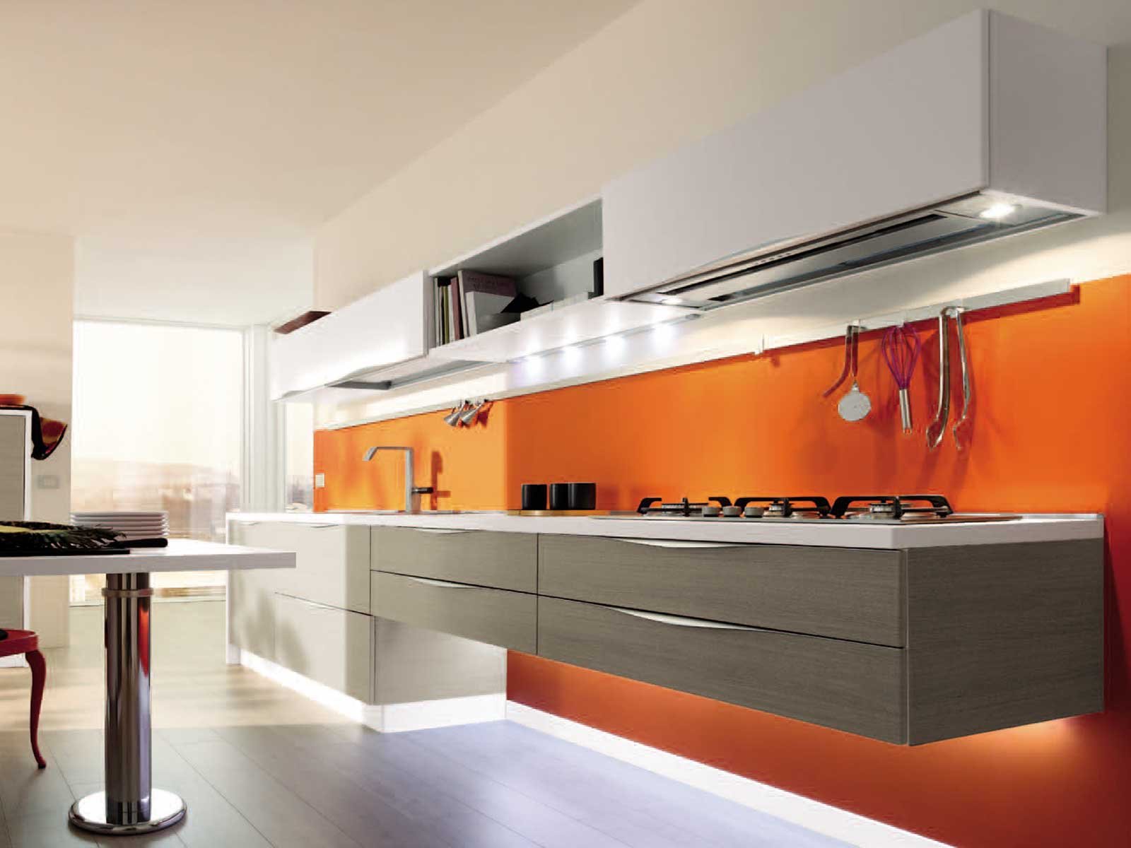 Парящие кухни без навесных шкафов