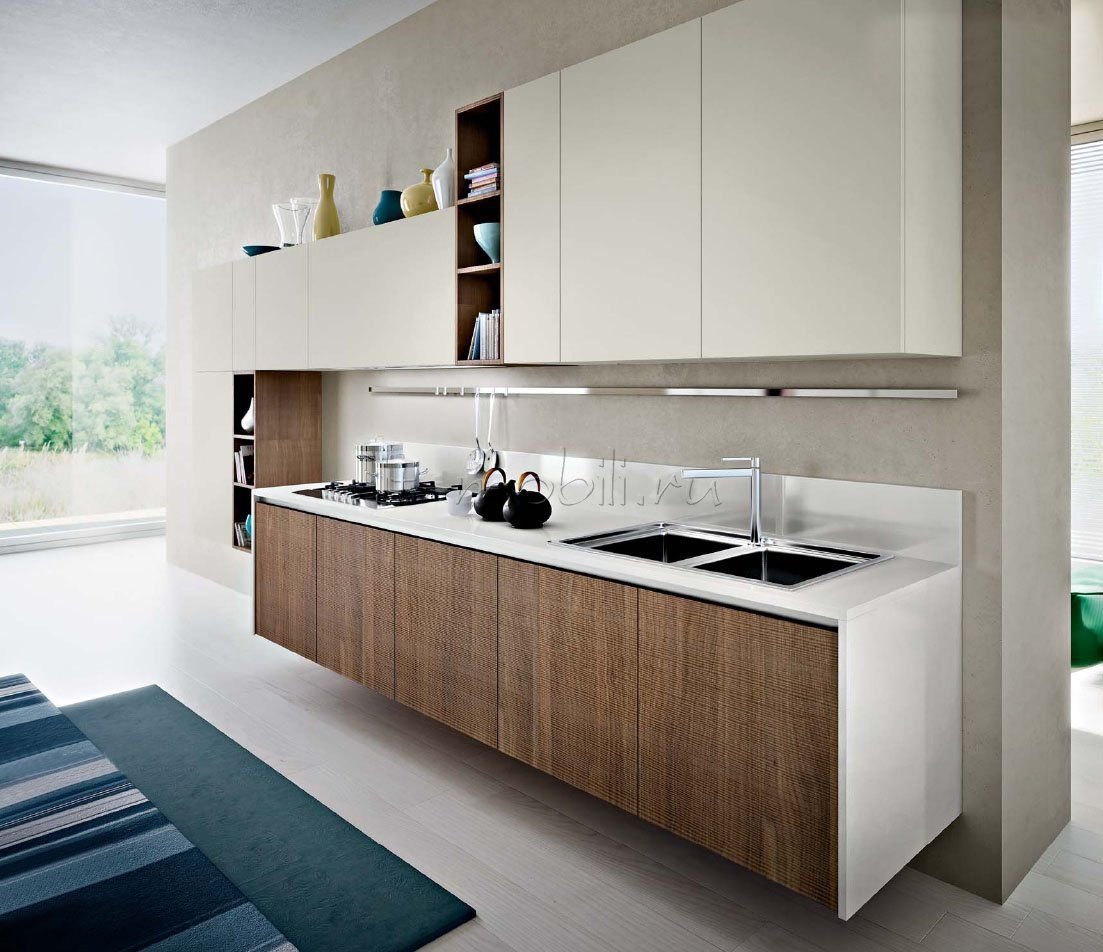 Кухня с подвесными нижними шкафами