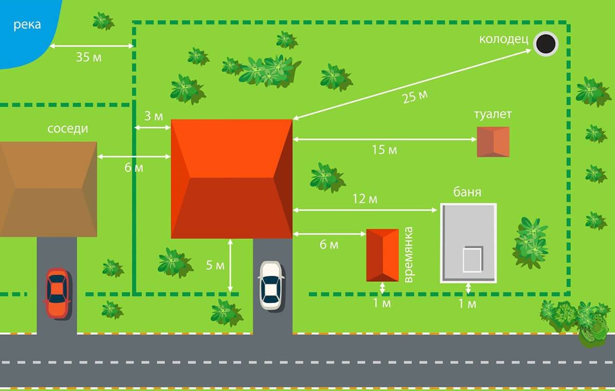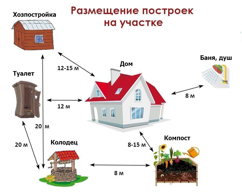 Расположение построек на участке нормы на 4 сотках в СНТ