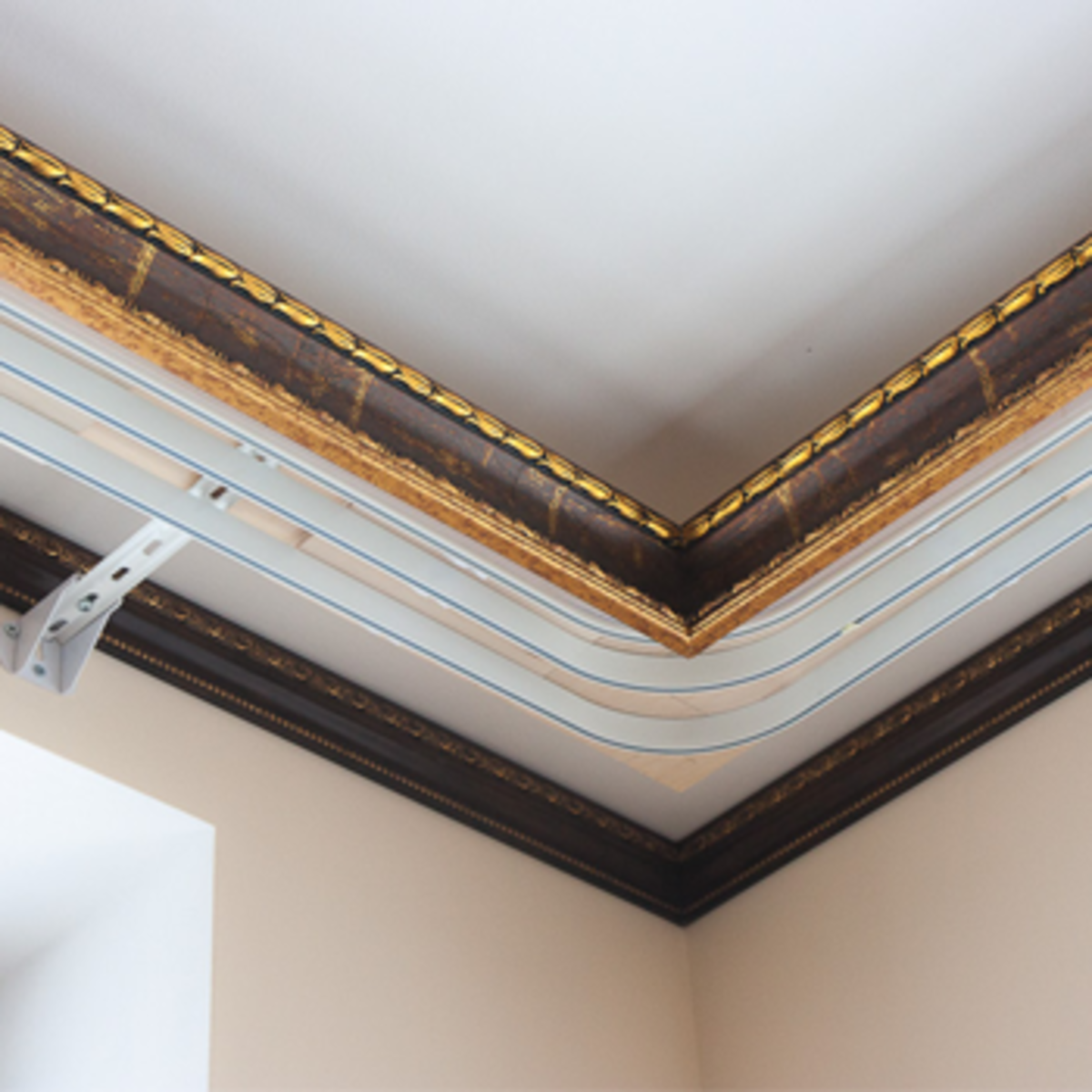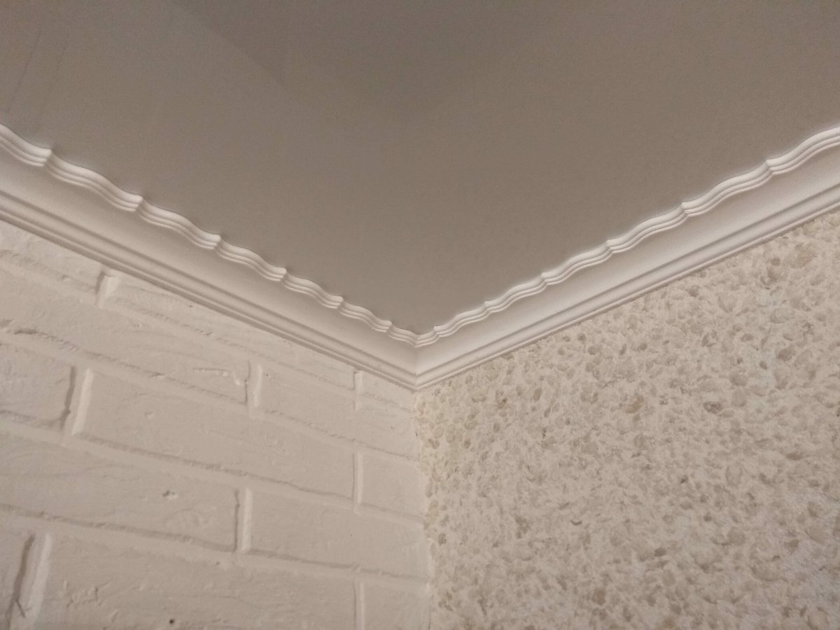 Наклеивание плинтусов на потолок