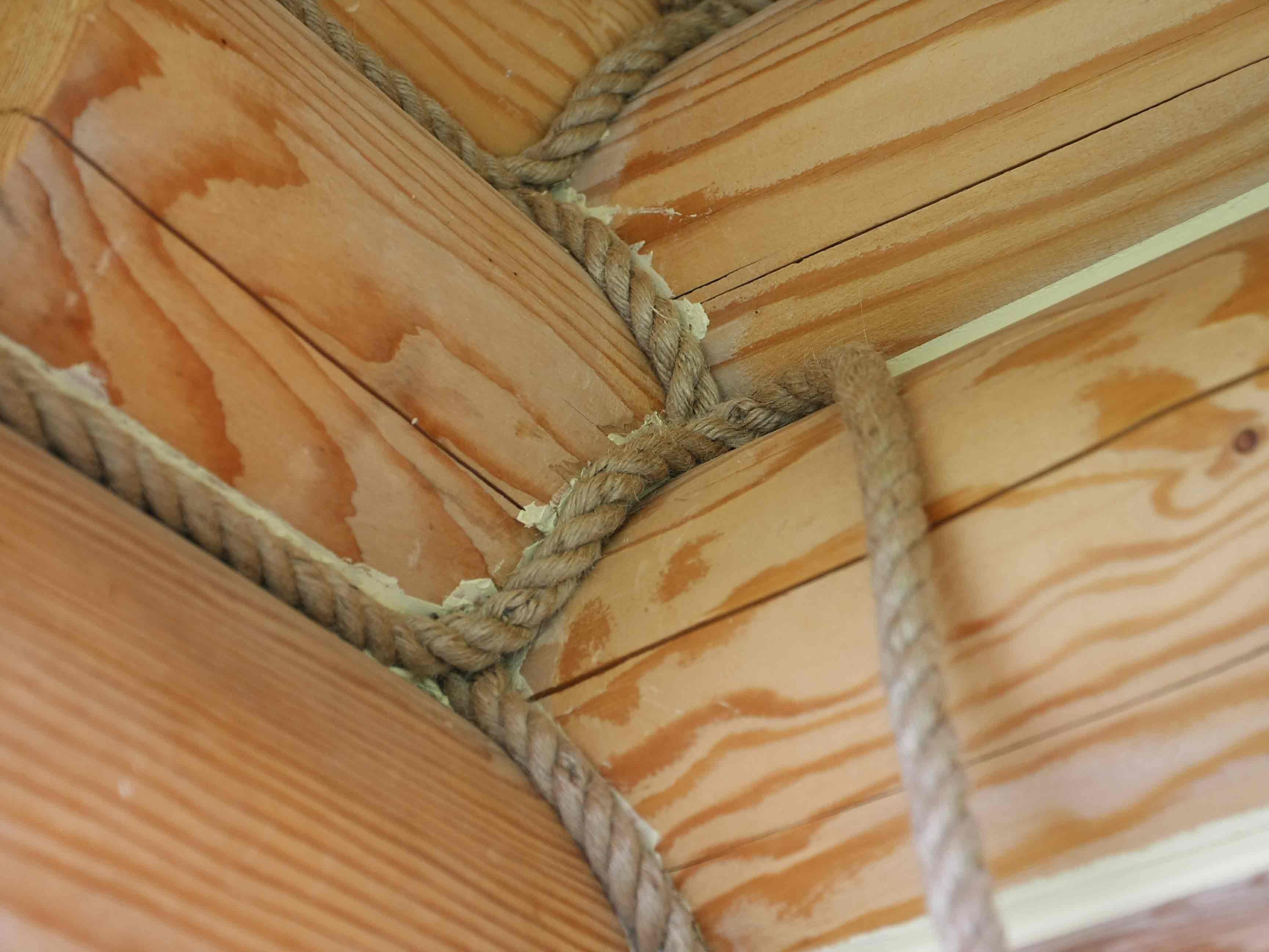 Конопатка сруба канатом