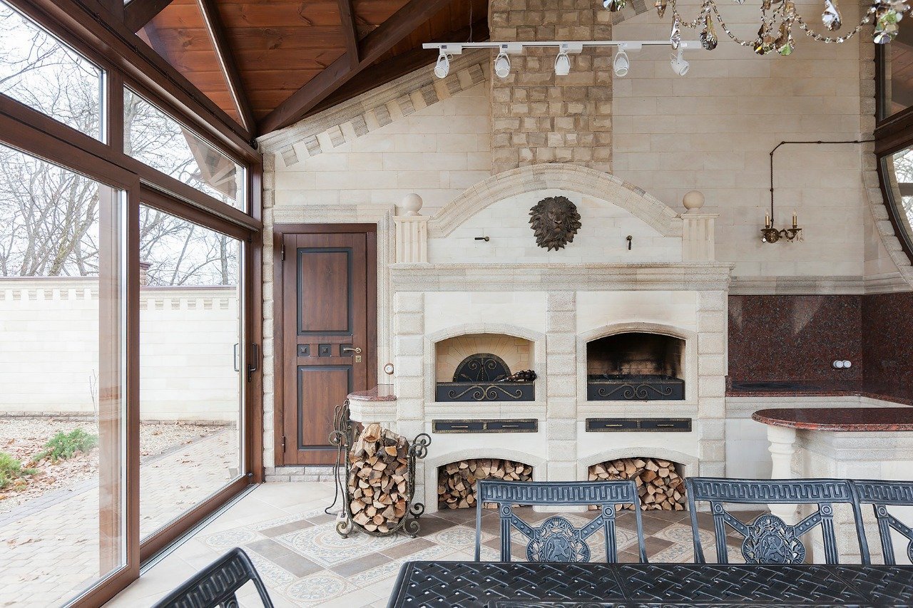 Летняя кухня с камином