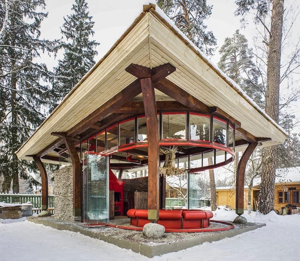 Зимняя беседка с камином
