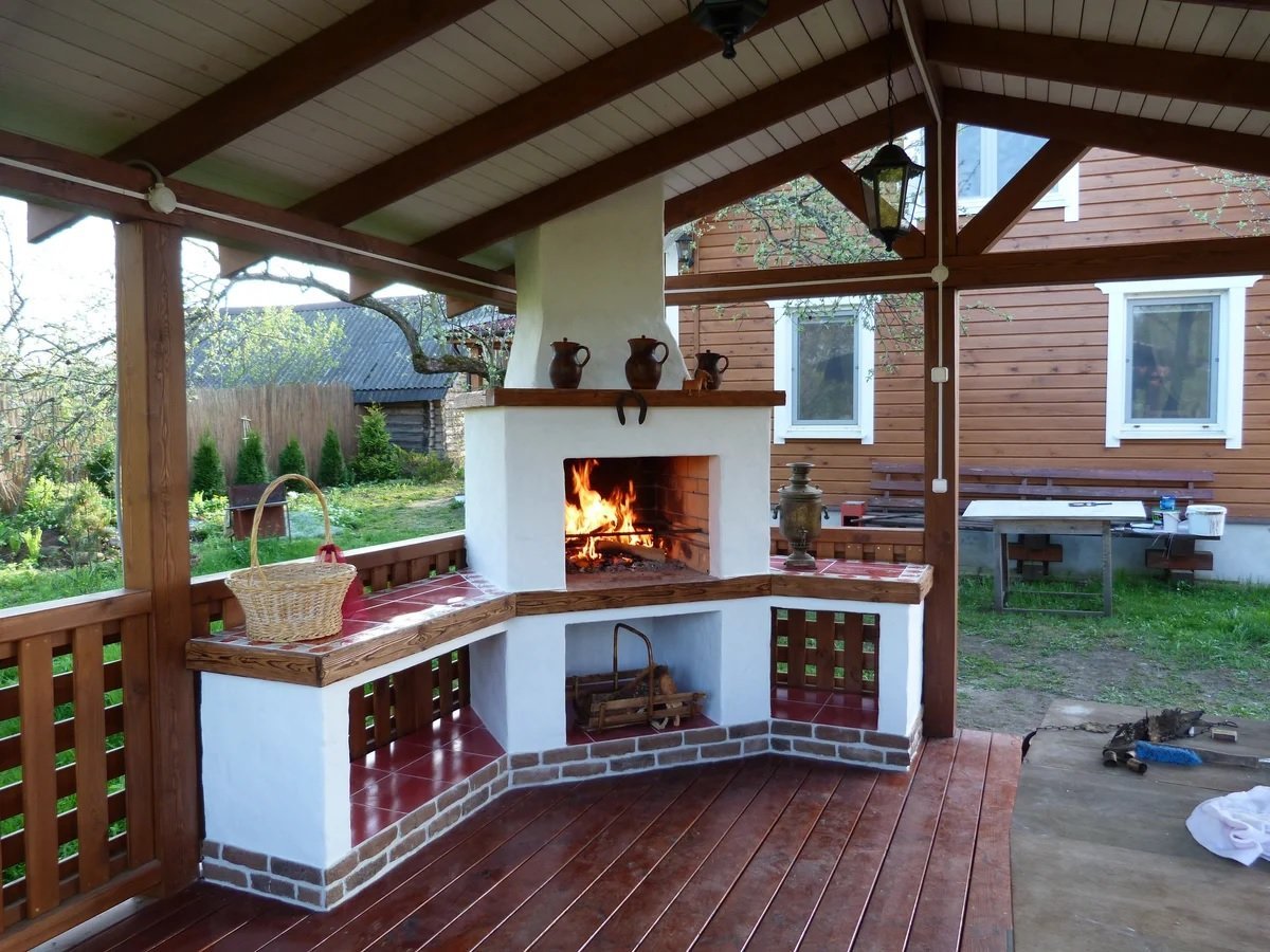Терраса с камином-барбекю