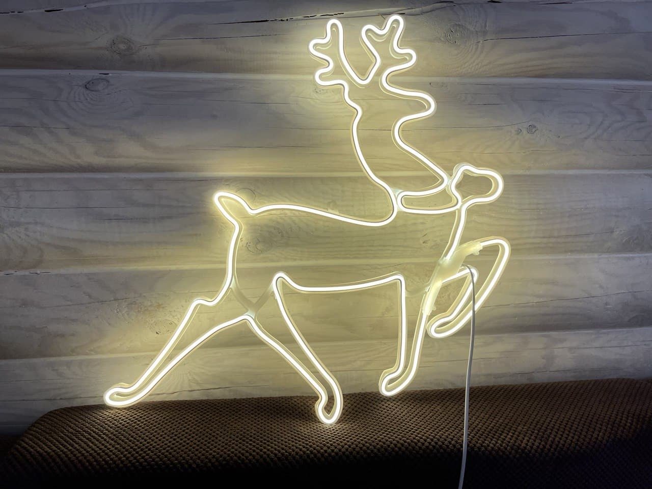 Олень из гирлянды на стене