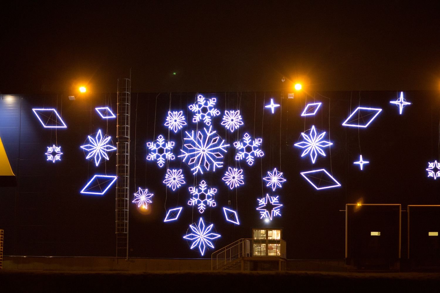 Украшение фасада снежинками