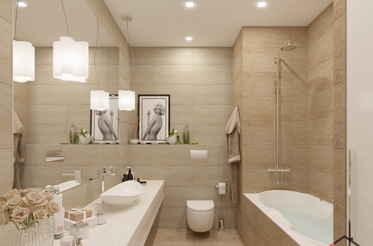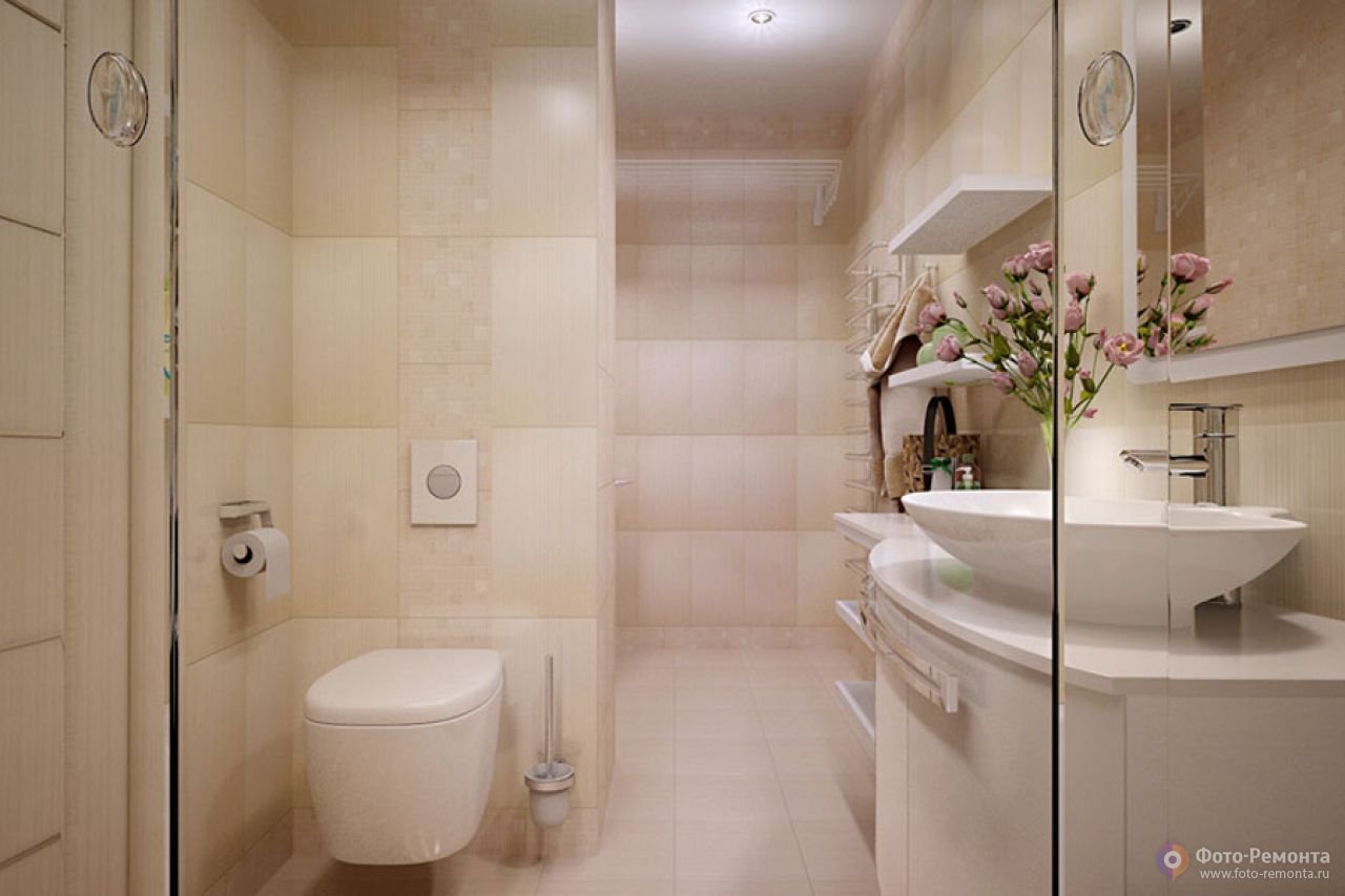 Бежевая ванная комната маленькая