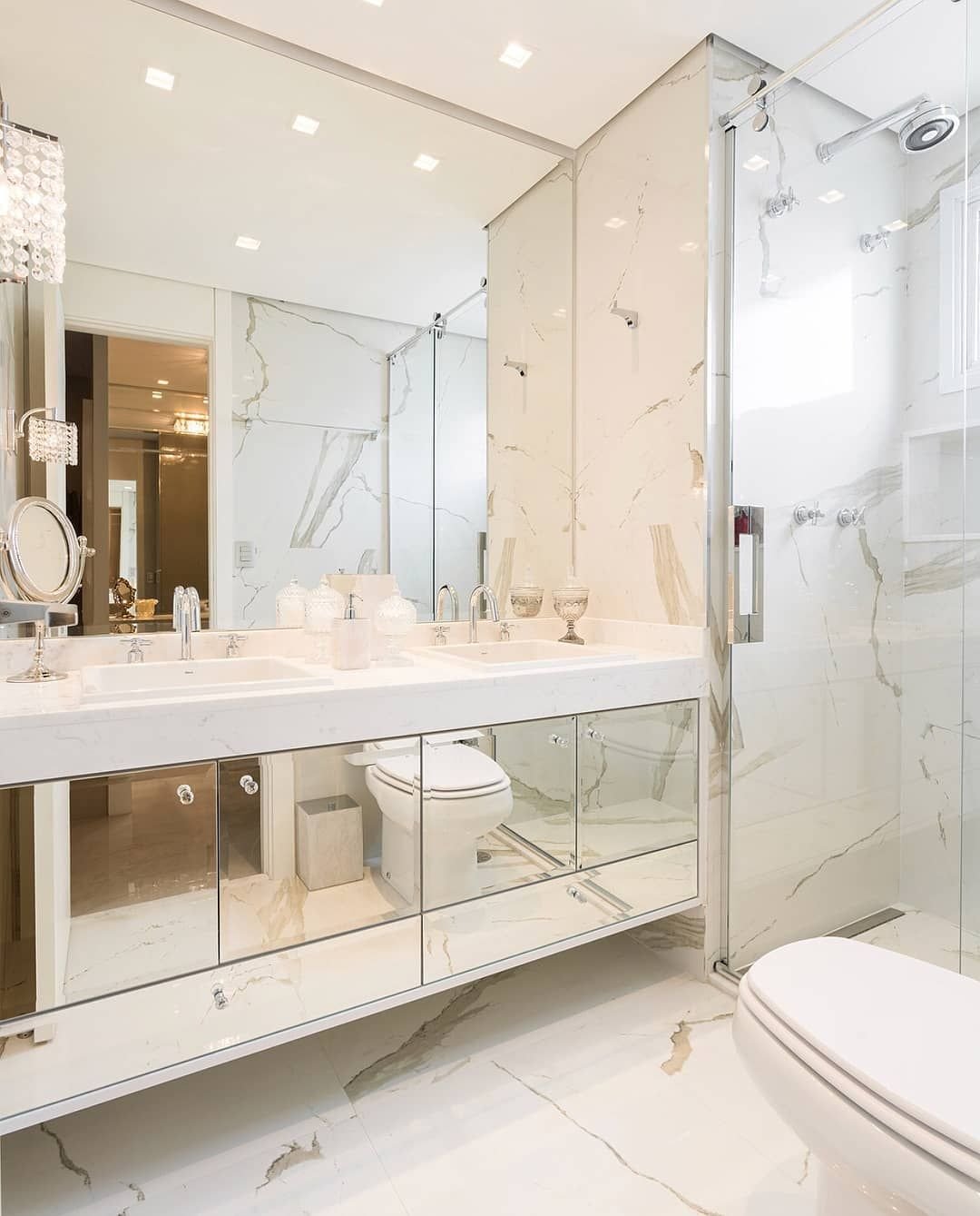 Ванная в светлых тонах под мрамор