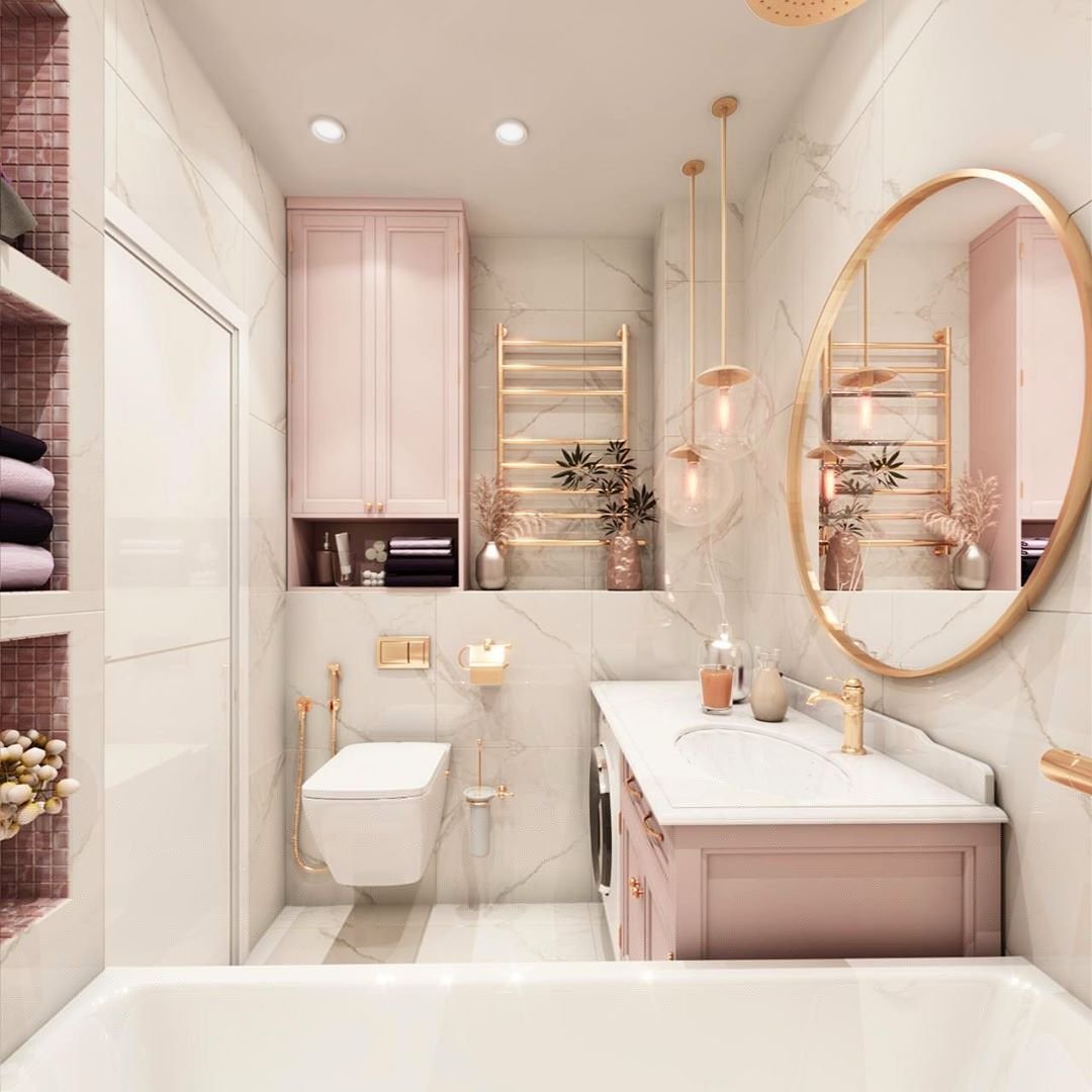 Ванная комната в розово бежевых тонах