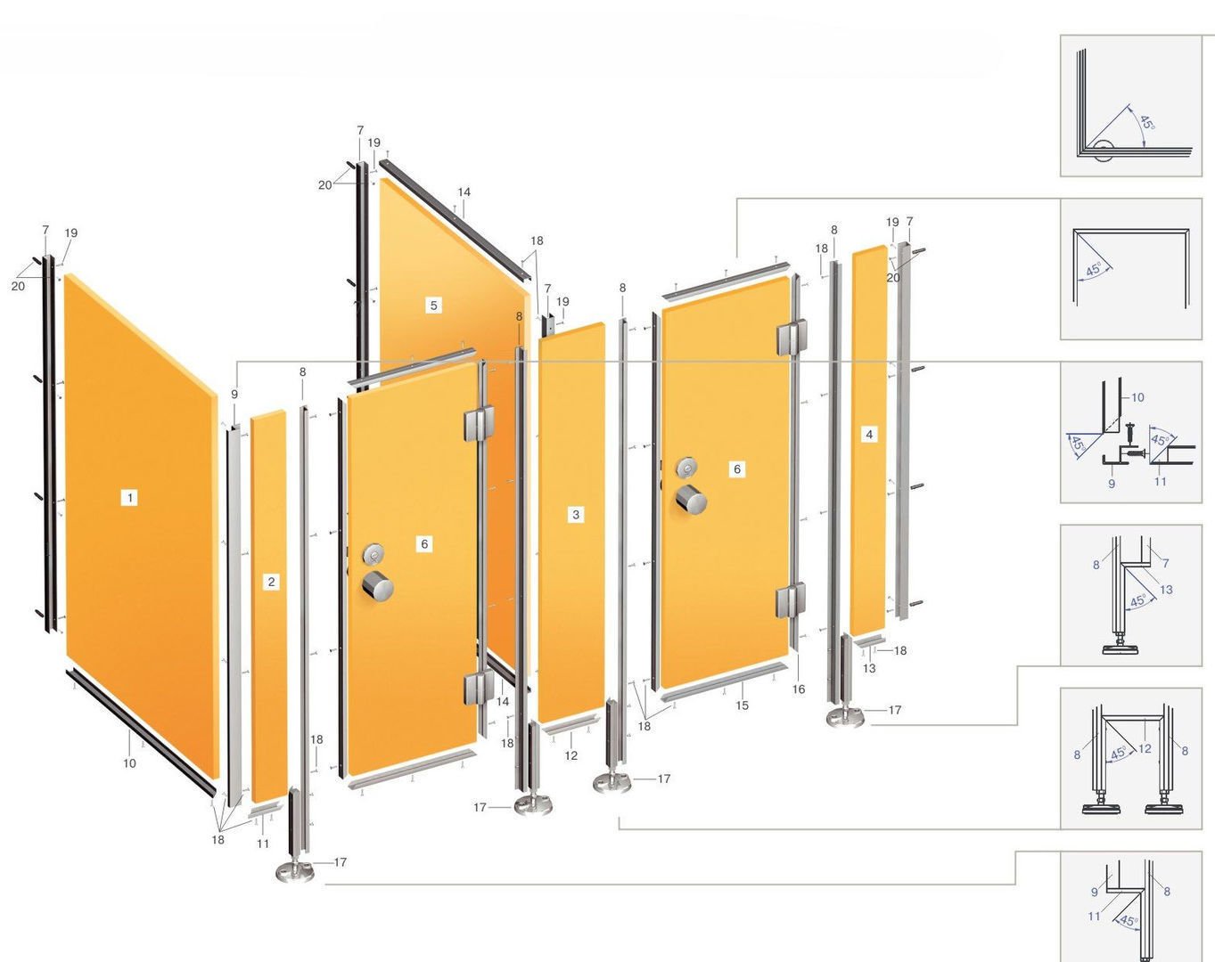 Перегородки для общественных душевых