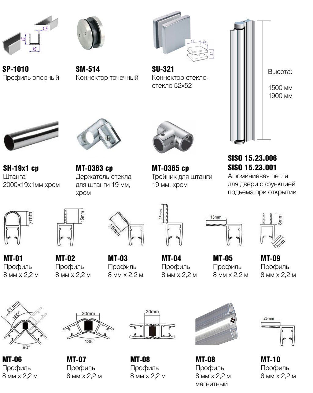 Алюминиевый профиль для душевых перегородок