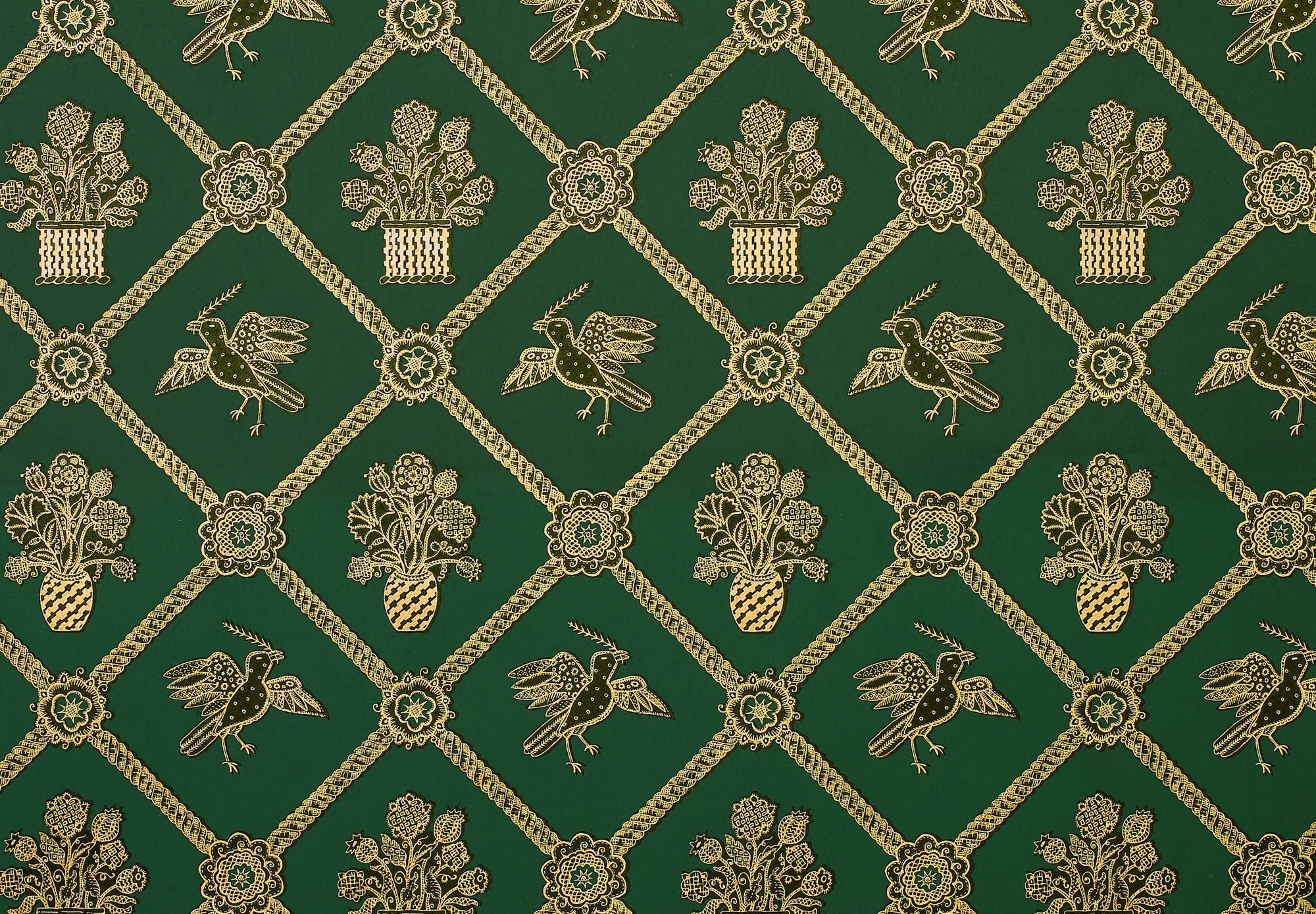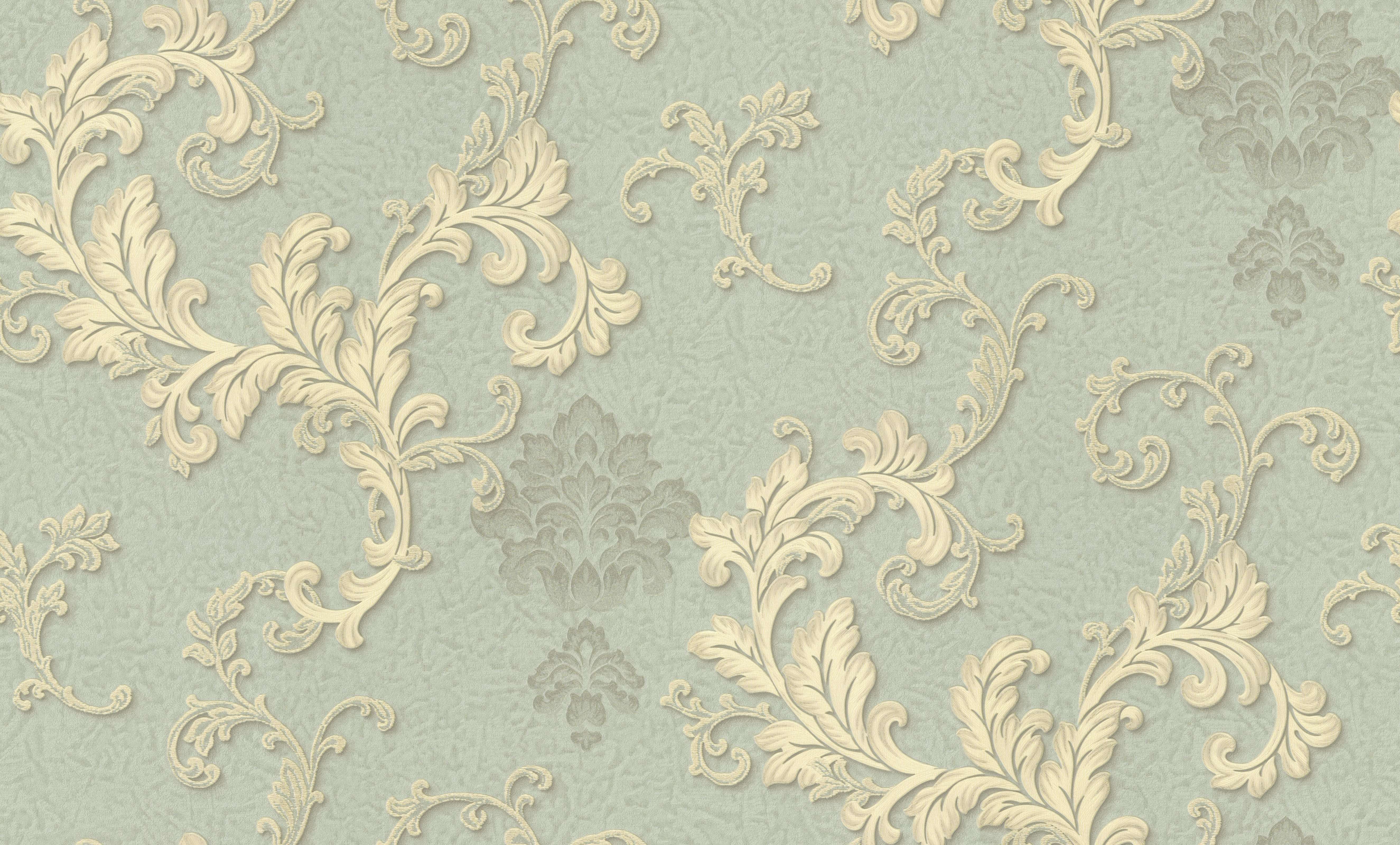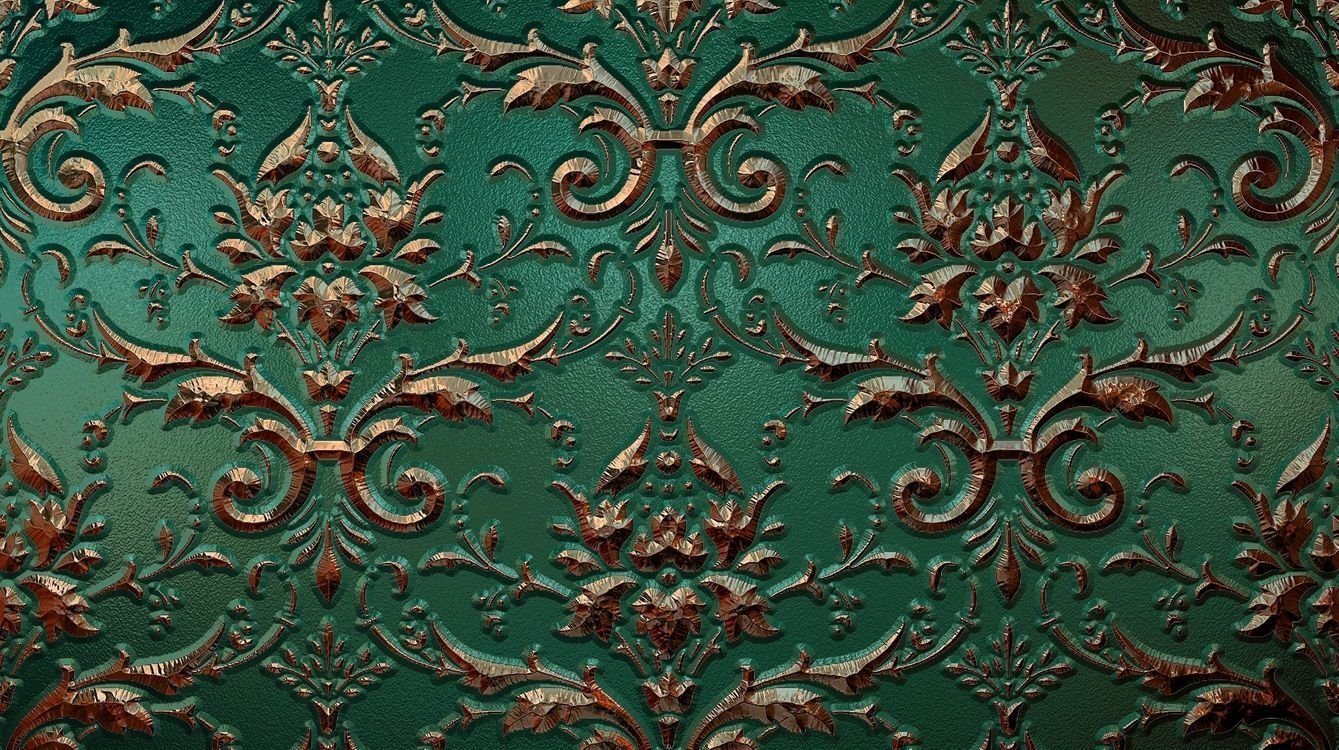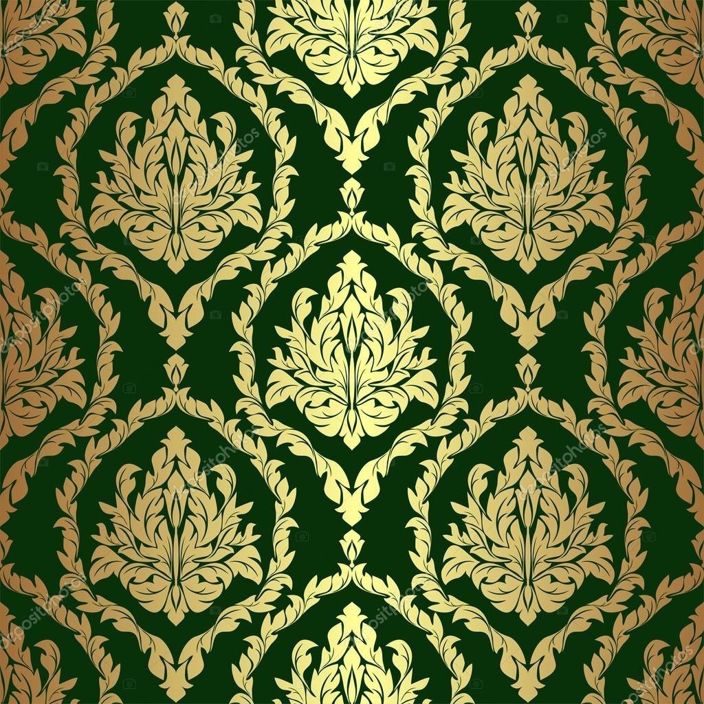 Зеленые обои с золотым узором