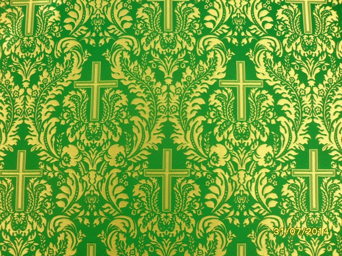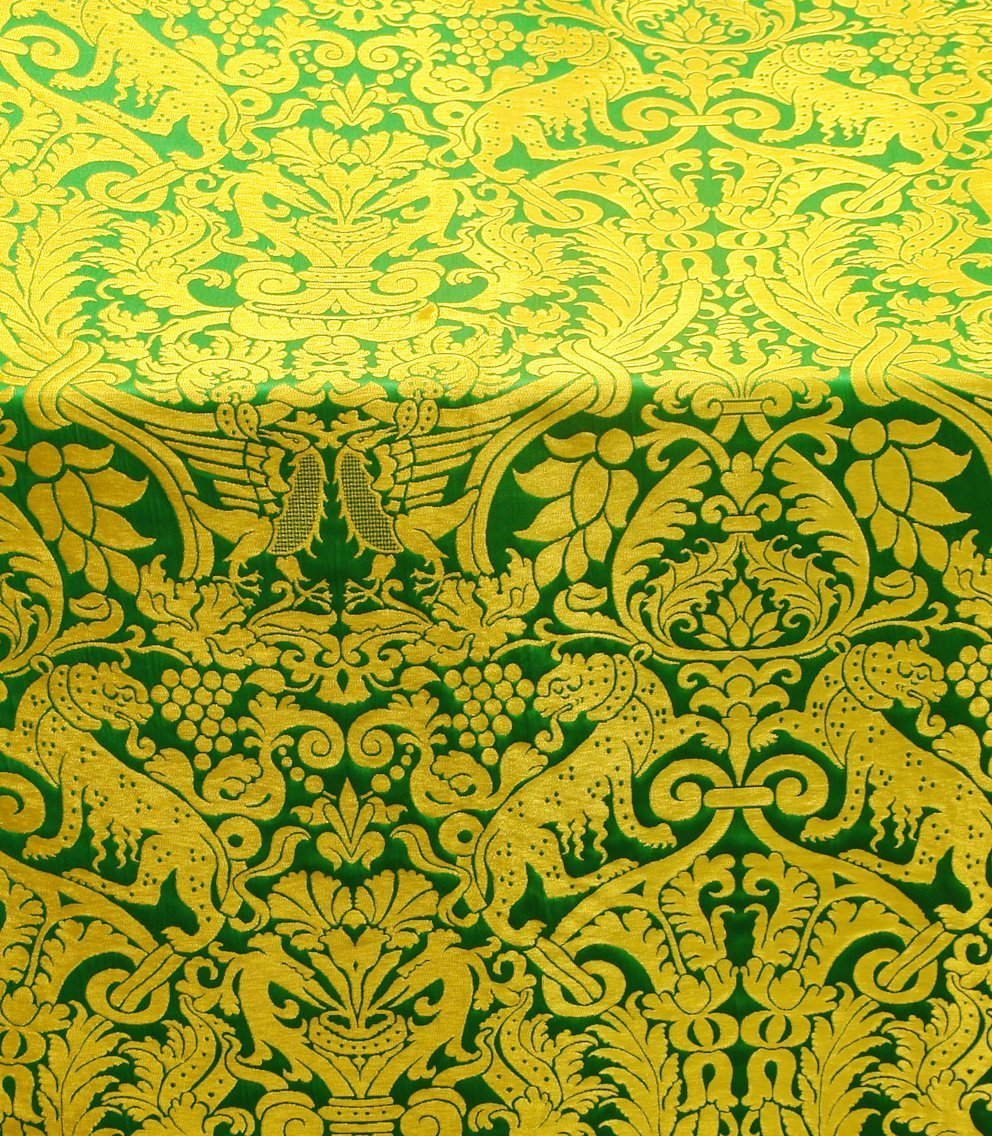 Ткань зеленая с золотом