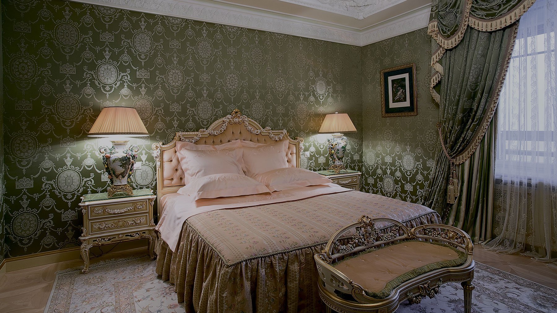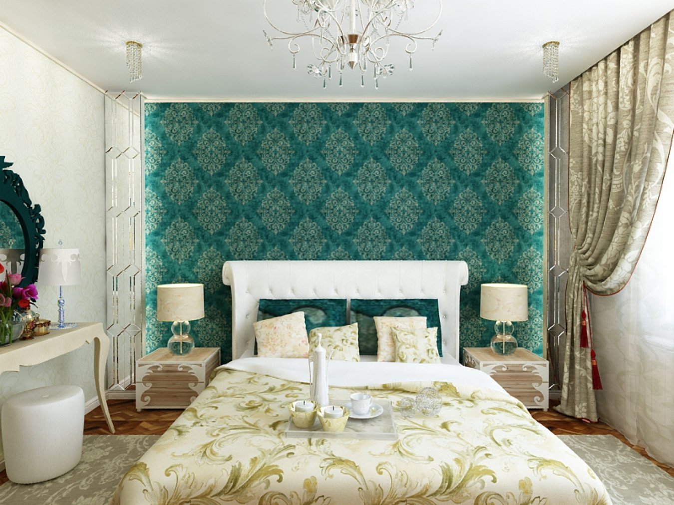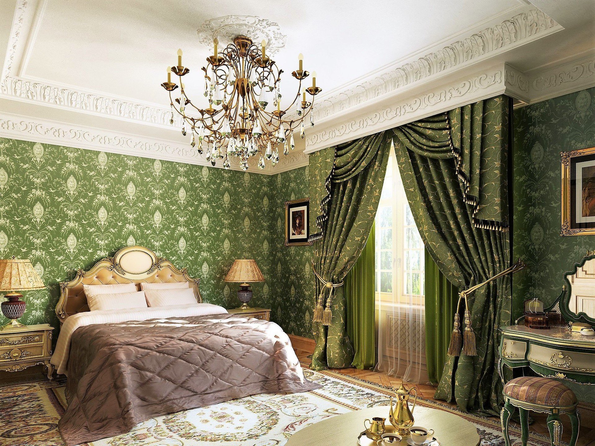 Классическая спальня в зеленом цвете