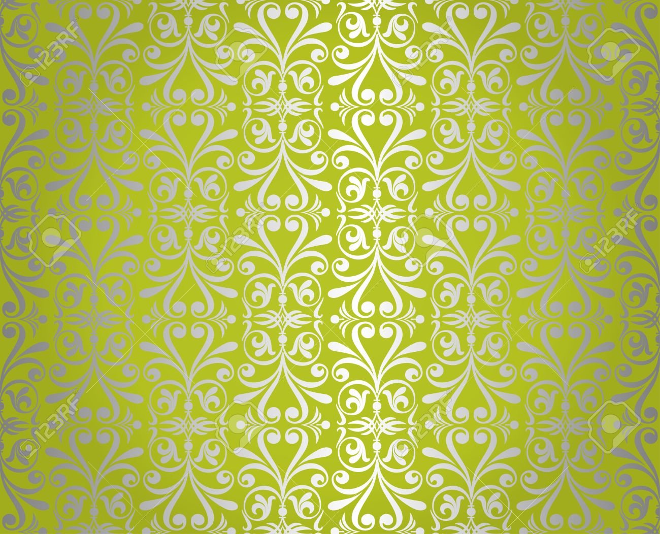 Зеленые обои с серебряным узором