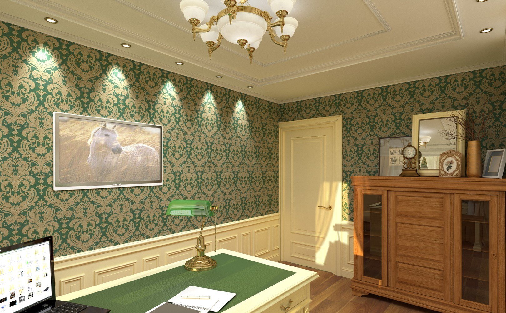 Кабинет с зелеными обоями
