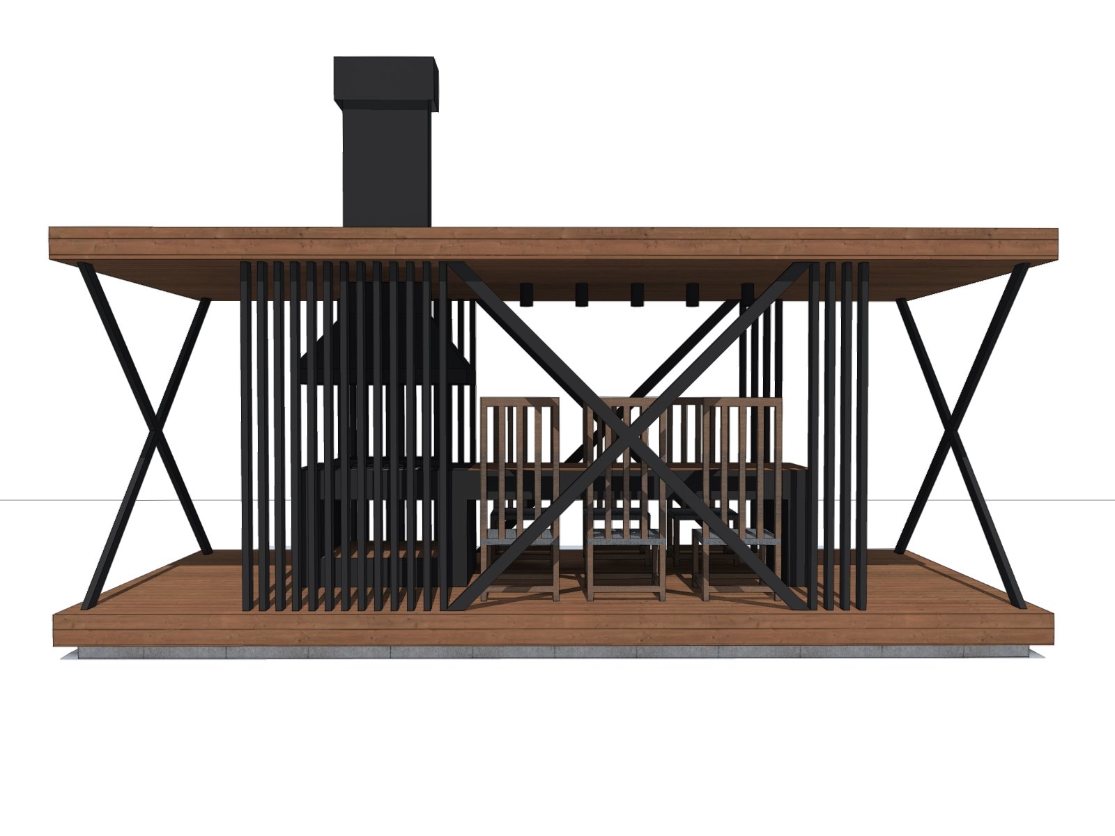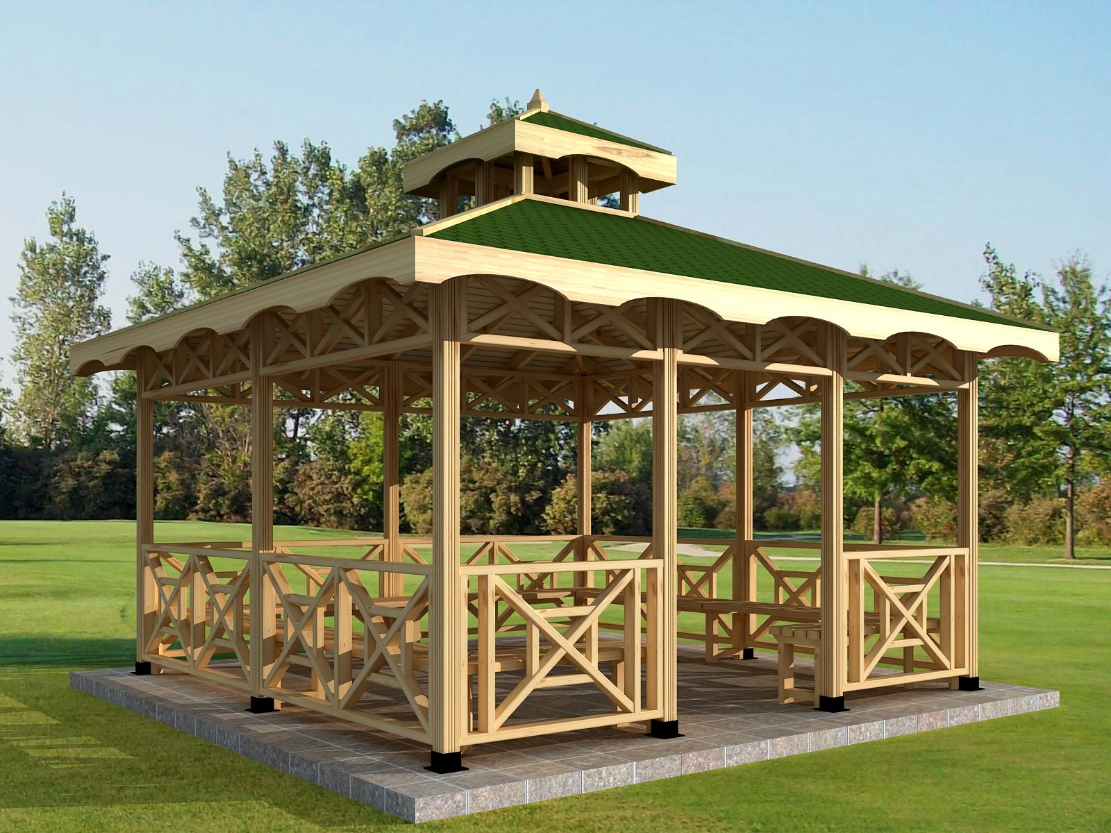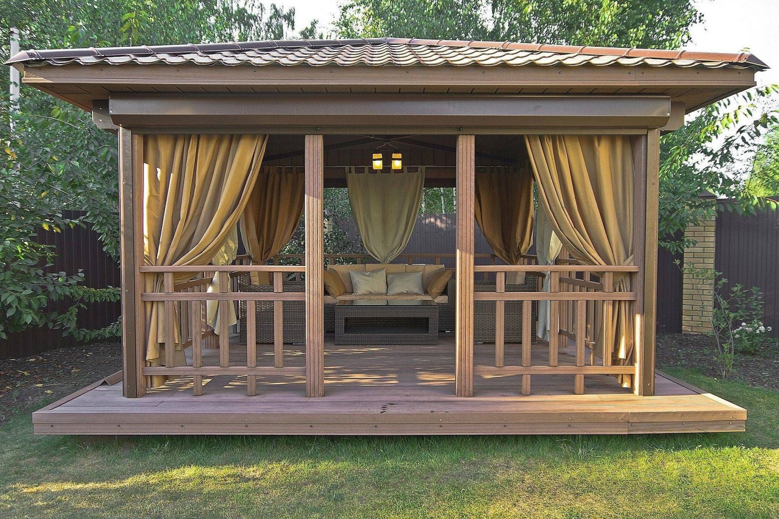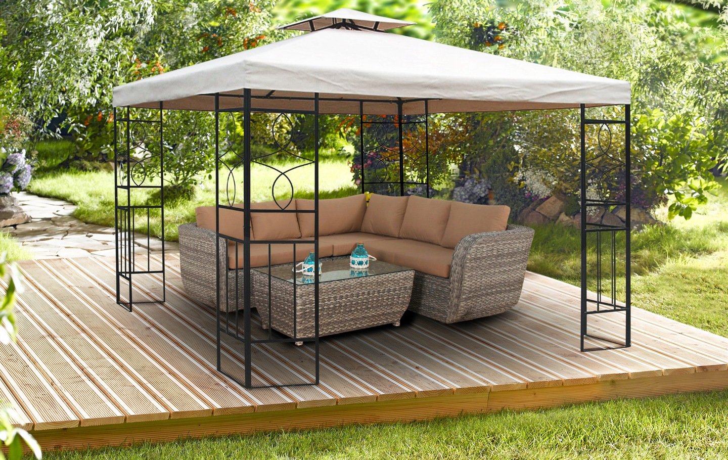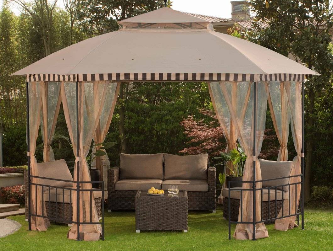 Павильон садовый с 3 скамьями 2,9х2 м сталь бежевый
