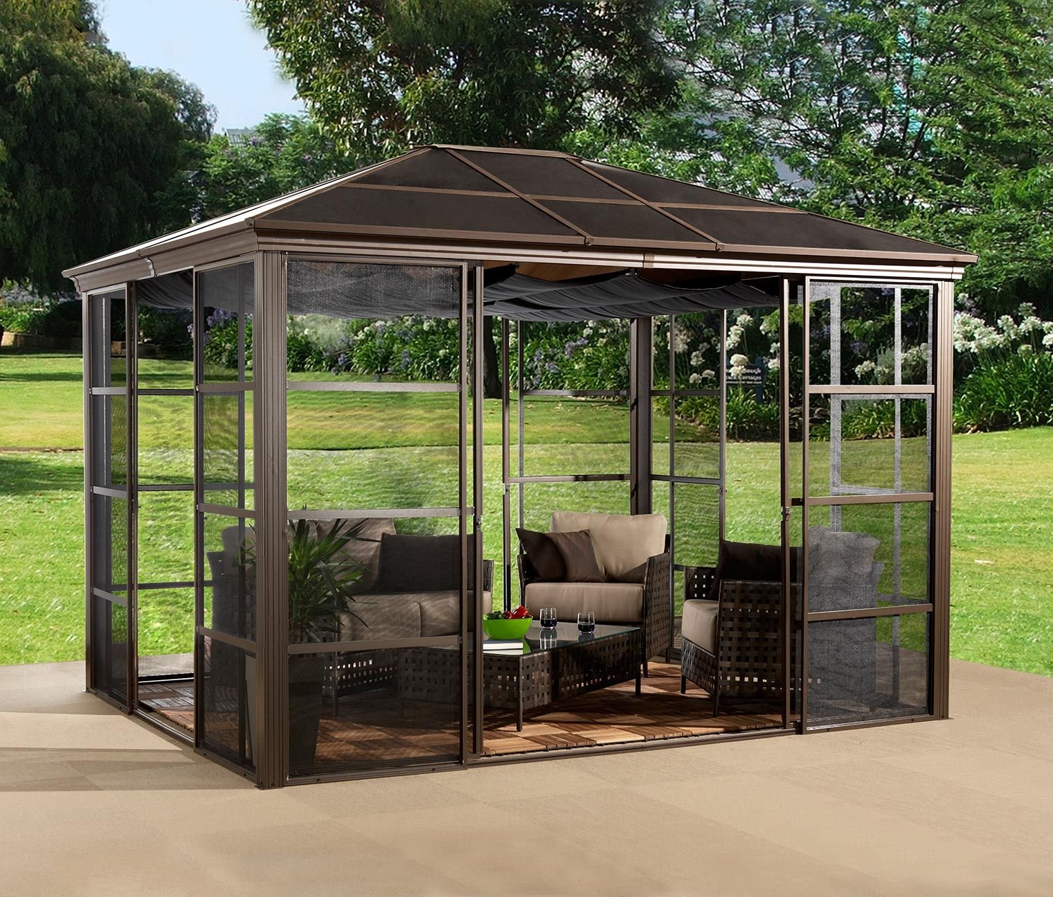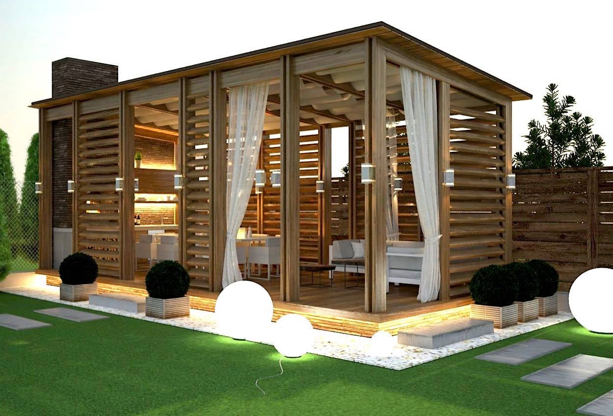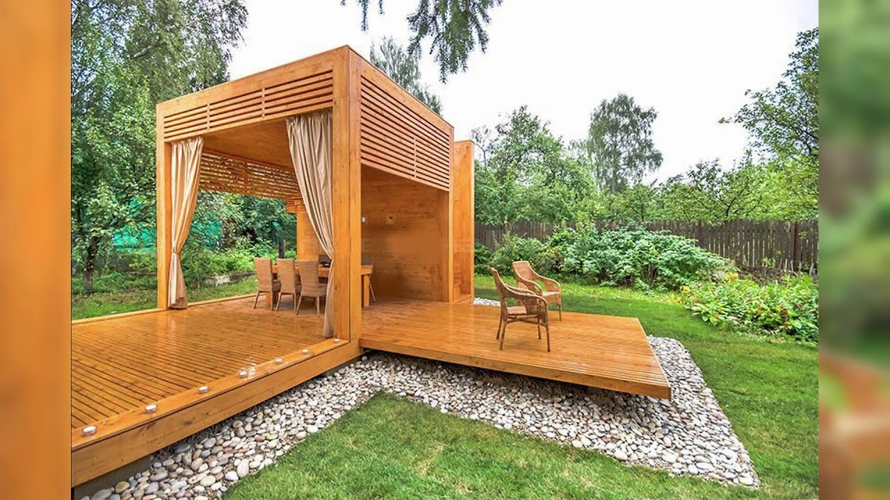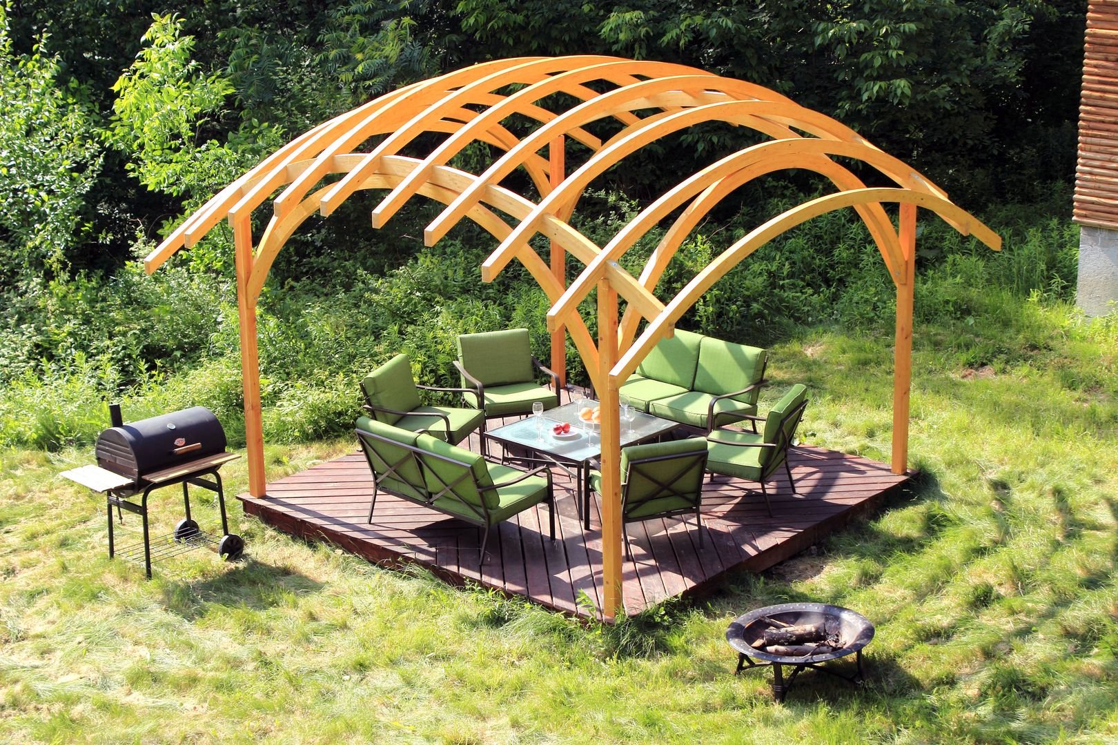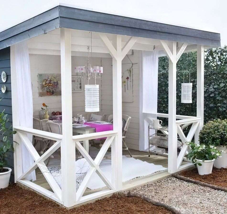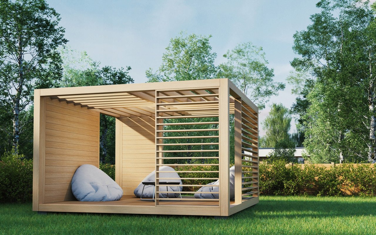 Павильон садовый с 3 скамьями 2,9х2 м сталь бежевый